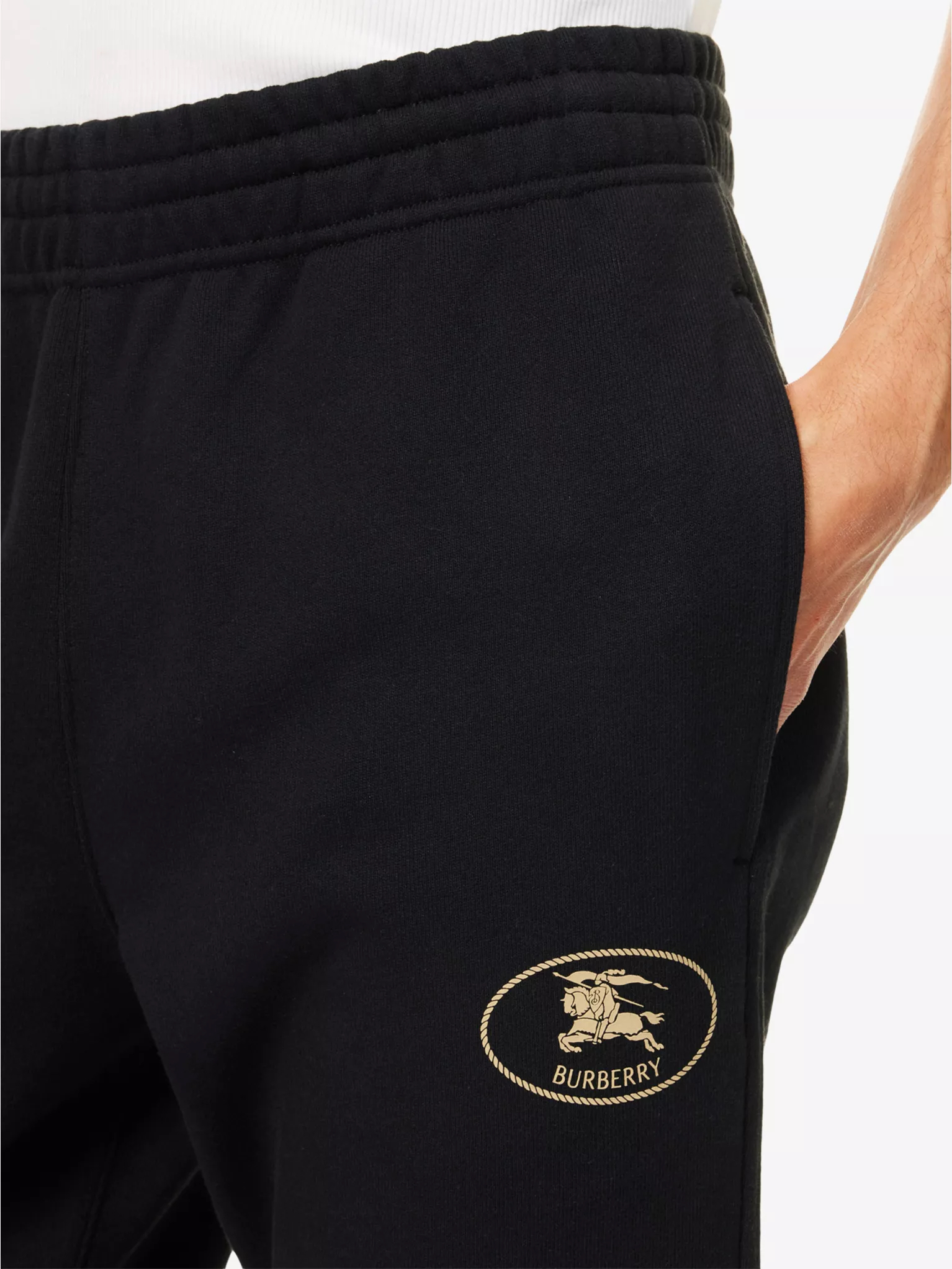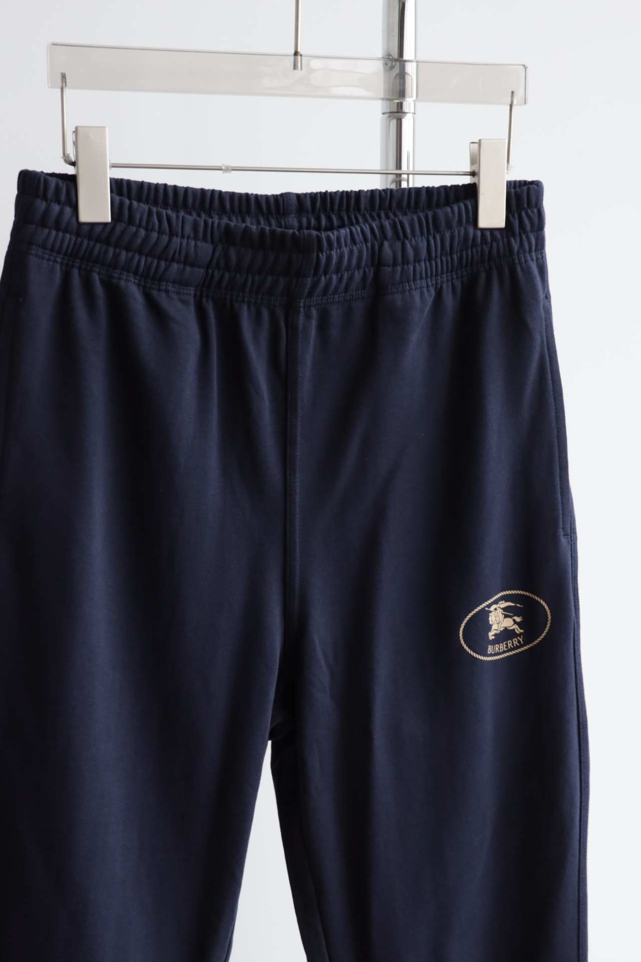 松紧腰带,两侧经典插袋+新标战马立体硅胶印花