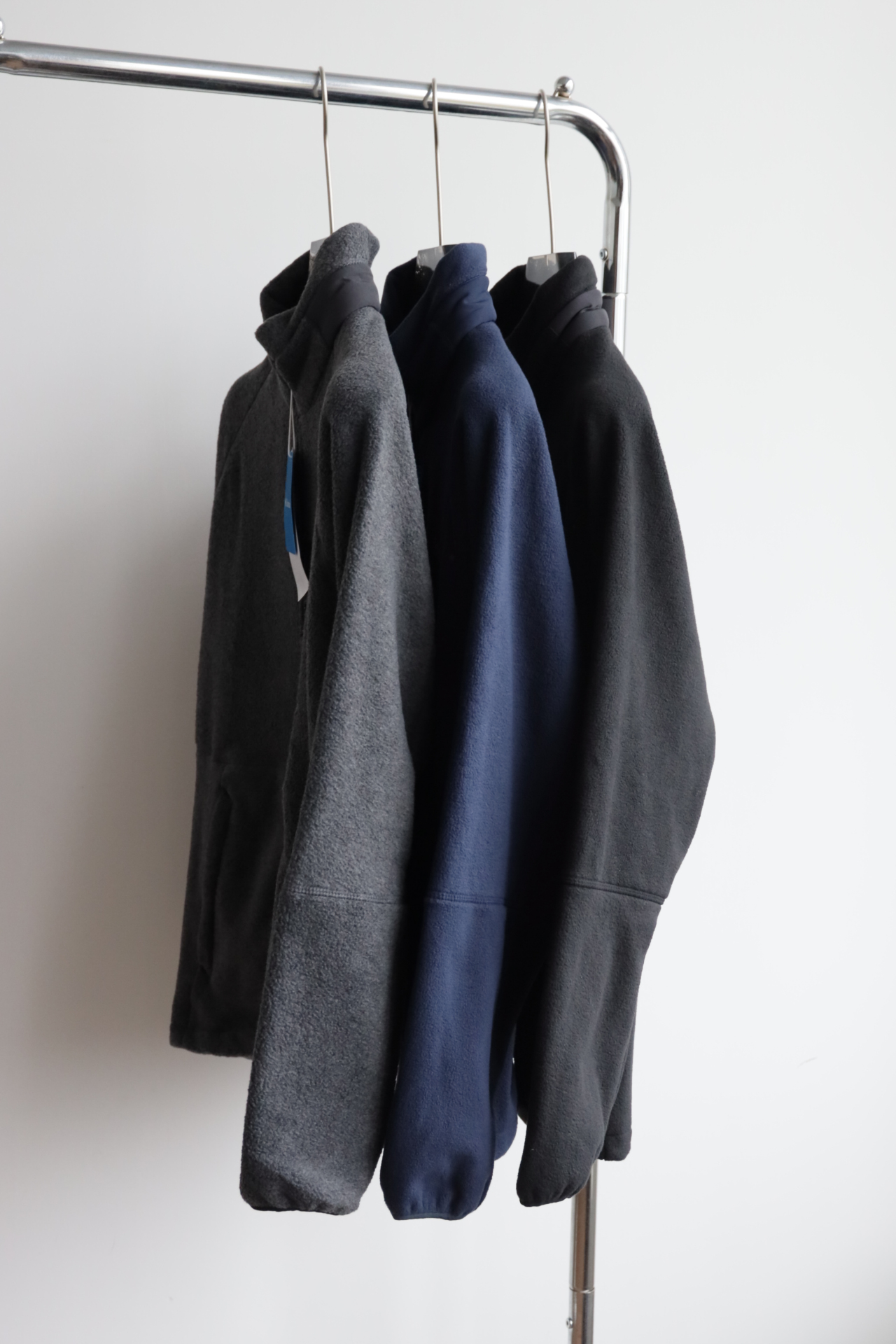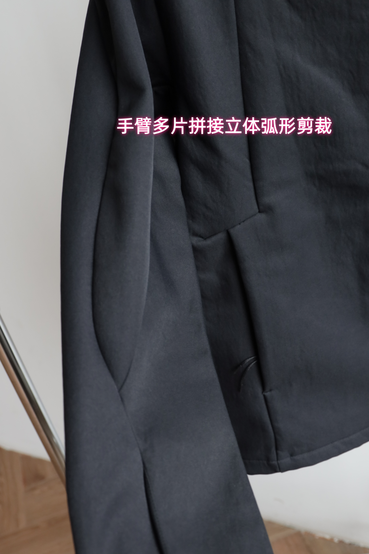 拉链立领合身版型,两侧隐藏式插袋