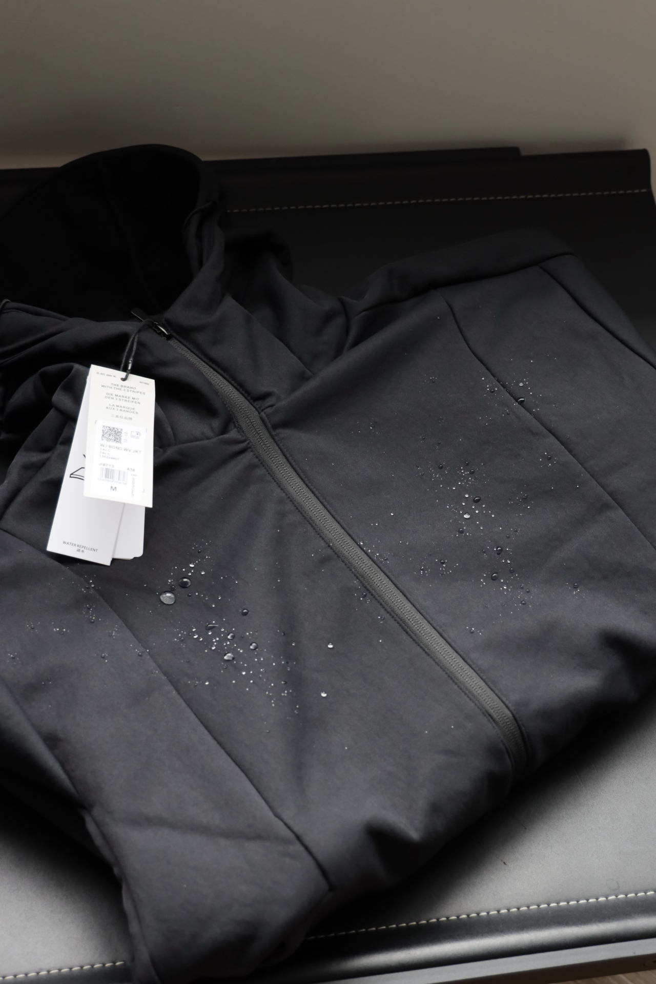 拉链全开襟配连帽,前袋,按扣袖口