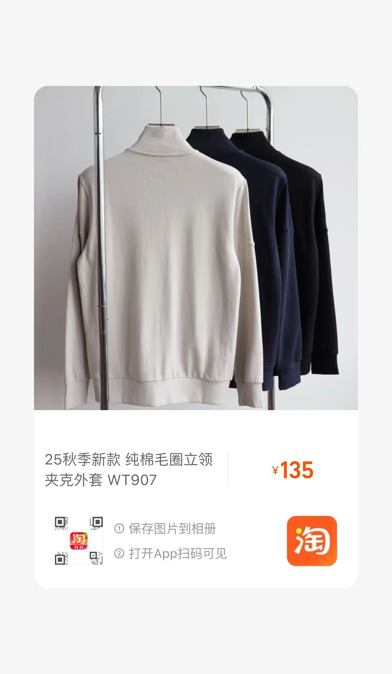 H.B 25秋季新款 纯棉毛圈立领夹克外套