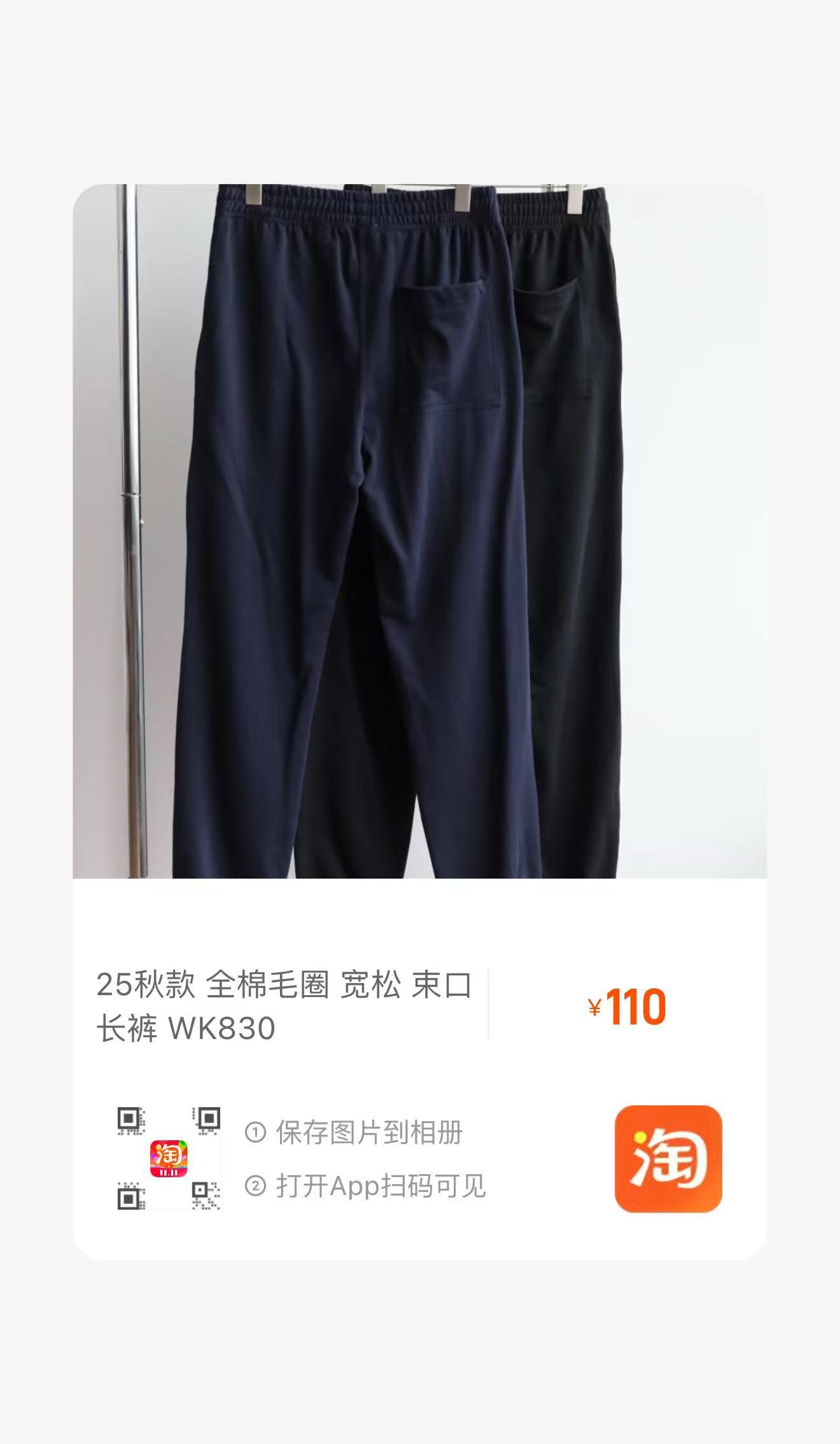 B.B 25秋款 全棉毛圈 宽松 束口长裤