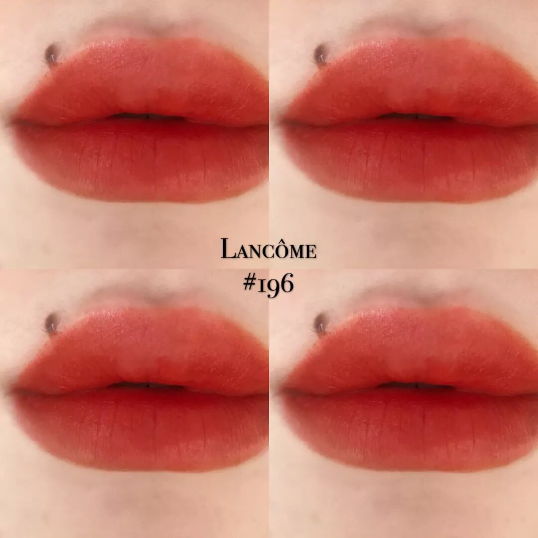 兰蔻 196 的经典胡萝卜色可不是吹的~ 雾感朱砂橘调自带柔光滤镜,黄皮、黑皮涂了秒提气色,素颜涂不突兀,浓妆涂更出彩!
