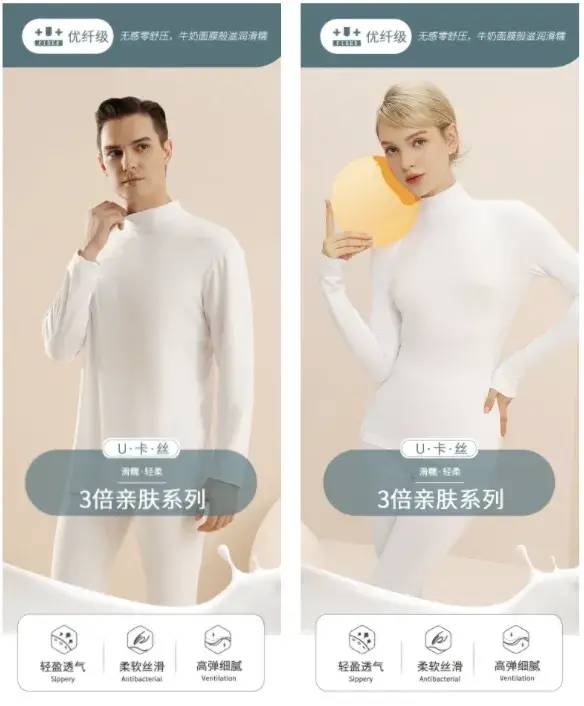 这得益于面料中超细纤维·U卡丝发热纤维的加入,让肌底衣能将身体散发的热量锁在肌肤周围。