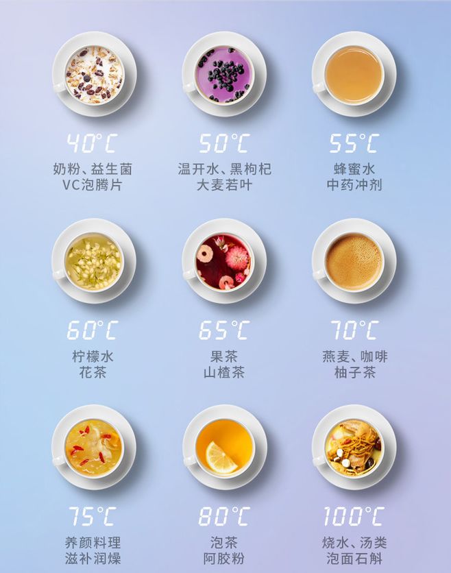 40℃-80℃保温调温,每五度递增,想喝什么都很方便~满足你日常的所有需要。