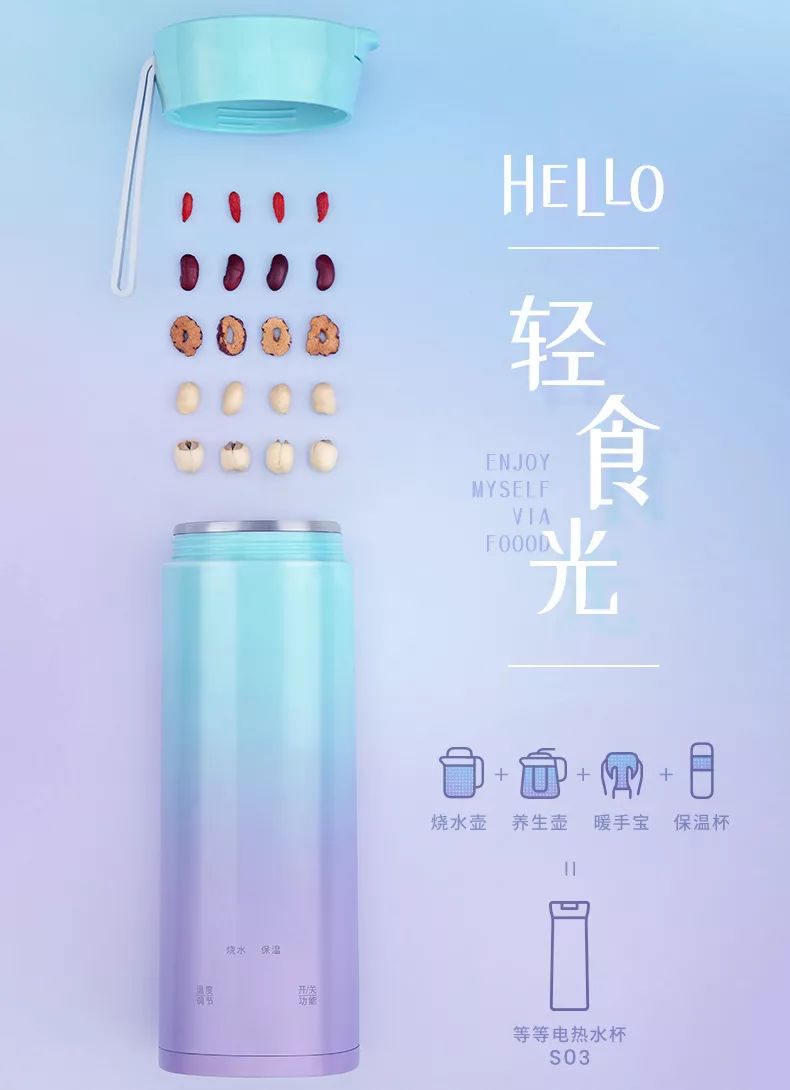 杯子更是集合了“烧水壶+焖煮杯+保温杯+暖手宝”的多功能,照顾好我们的胃,用杯子变出花样美食。