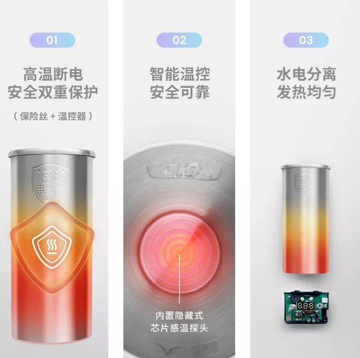 它小巧如保温杯,5分钟内烧开水,还能在40℃-80℃之间保温,让你随时随地喝上热饮,轻松解决出差、旅行的饮水问题。
