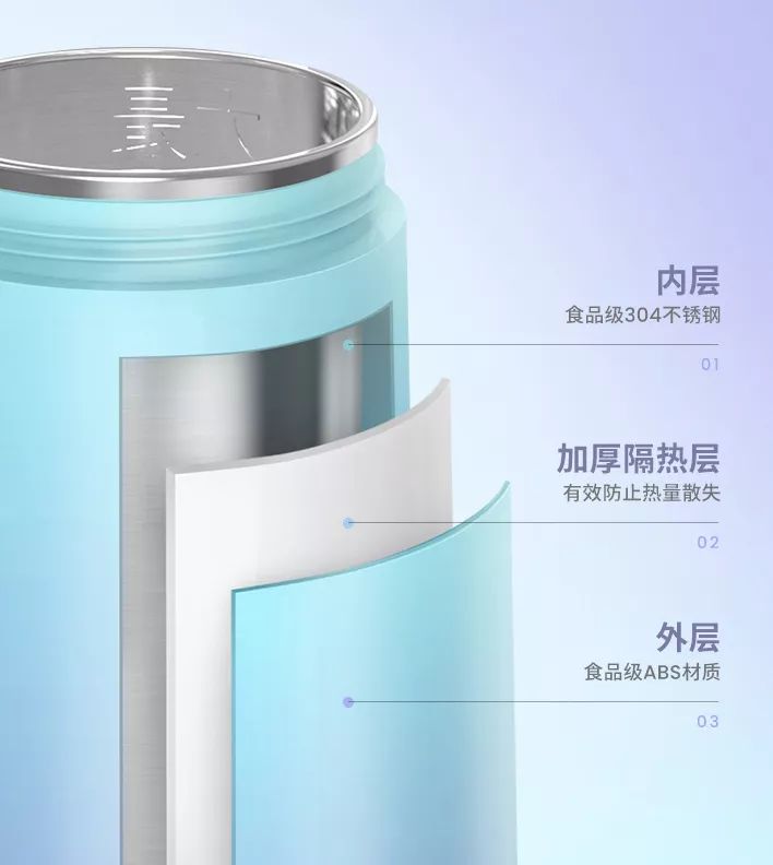 通过三层保温设计,可随时当作有着不错保温效果的保温杯使用,水温可保持在55℃左右,循环保温4小时,随时喝不用担心烫嘴。