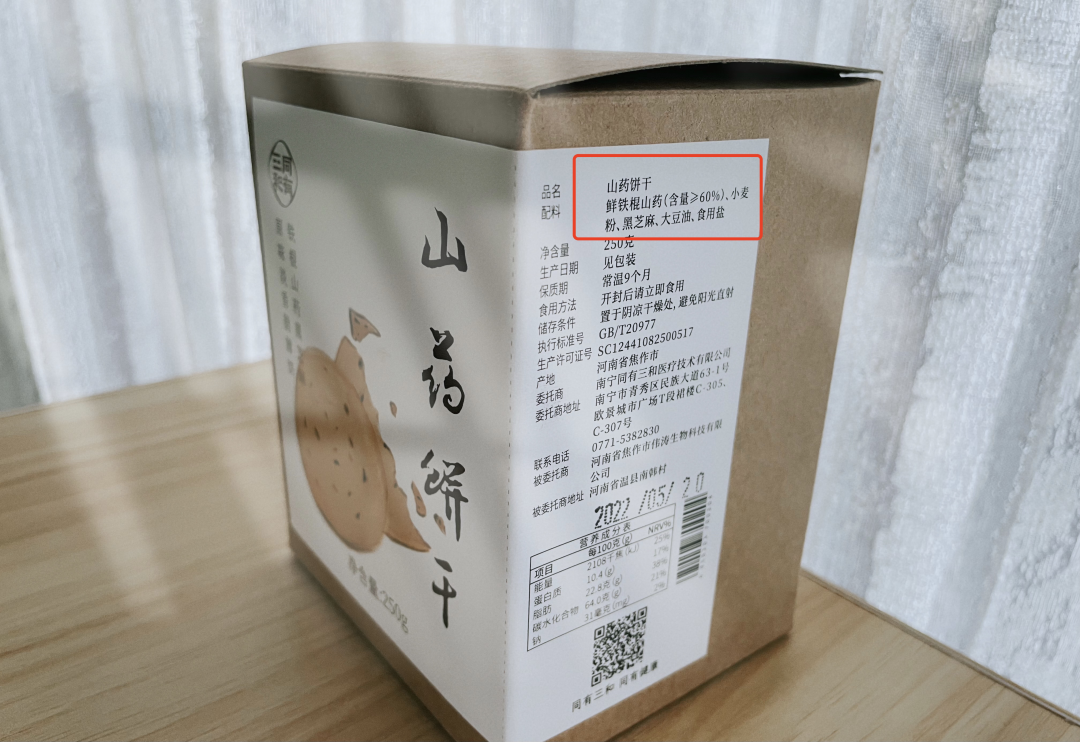 同有三和山药薄饼的配料表,一如既往的简短,只有——