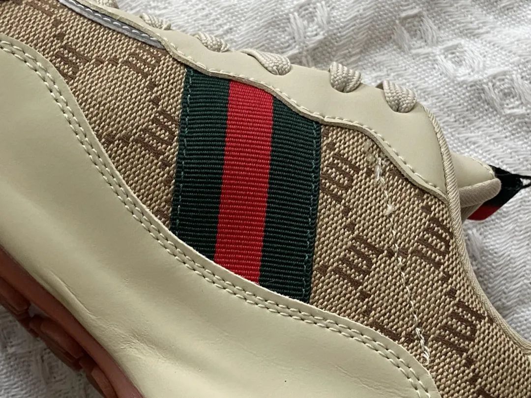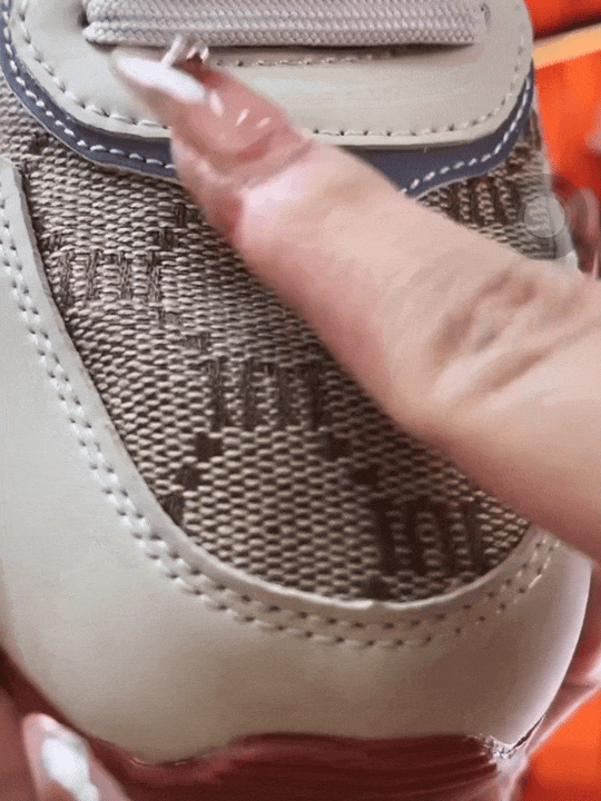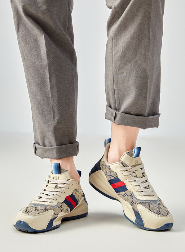 鞋身咖色提花布更有质感,留白处采用柔和的米黄色,衬托鞋身整体气度不凡。