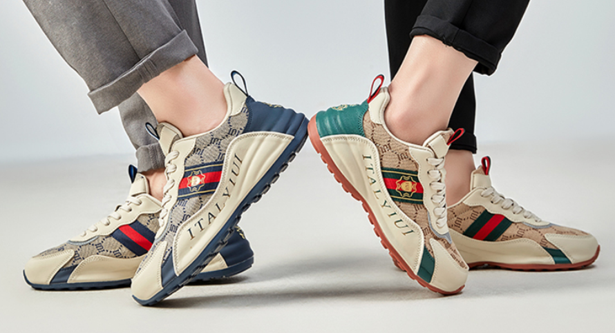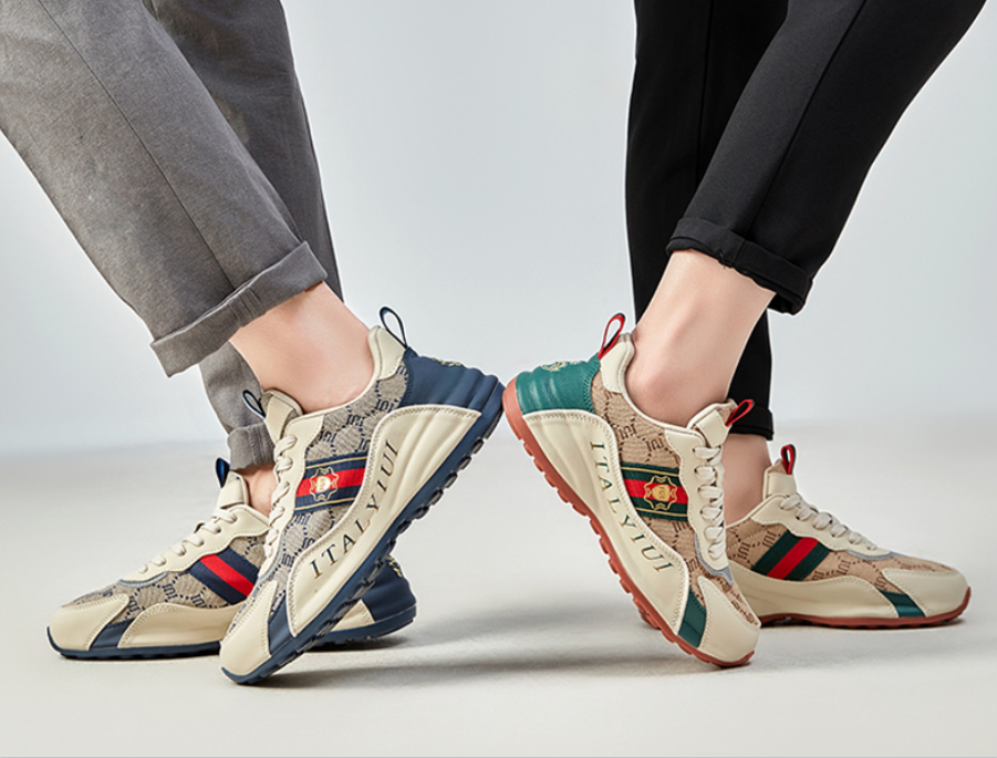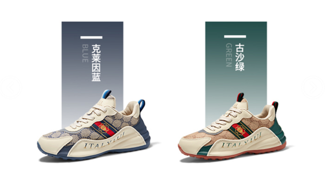 这款【IUI轻奢情侣款潮鞋】以对比的红绿色和互补的红蓝色进行设计搭配,给人眼前一亮的视觉冲击感。