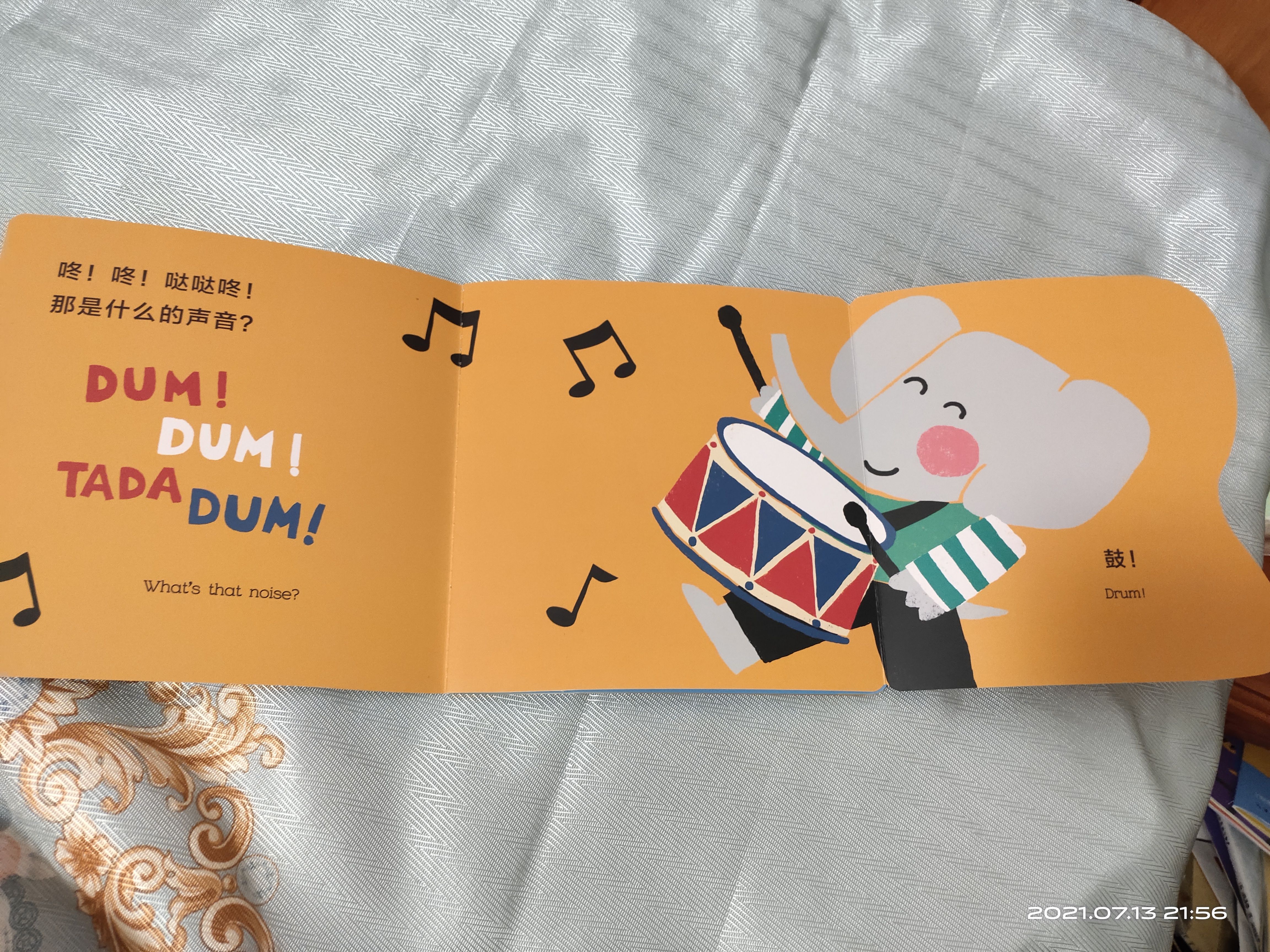 不打开折叠的那一页可以让孩子先想象一下,猜一下是什么声音,