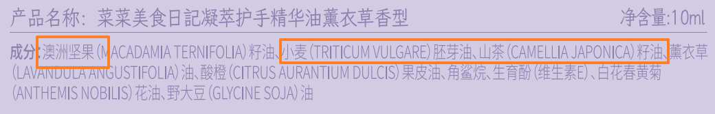 我们选择了一组基底油黄金搭档:澳洲坚果油+小麦胚芽油+山茶籽油。