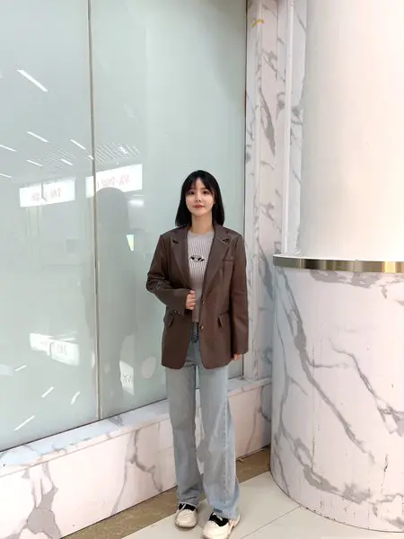 外套简直太酷了!上身时尚又个性,版型设计能修饰身形又不会有束缚感,细节上也做的很用心,皮面质量也很好,很靓!