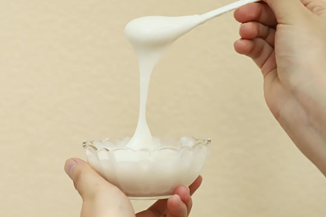 如果水温不够,搅拌不能成糊状,可在微波炉打 30 秒(不宜在微波炉加热太久,淀粉会变性,影响口感)。