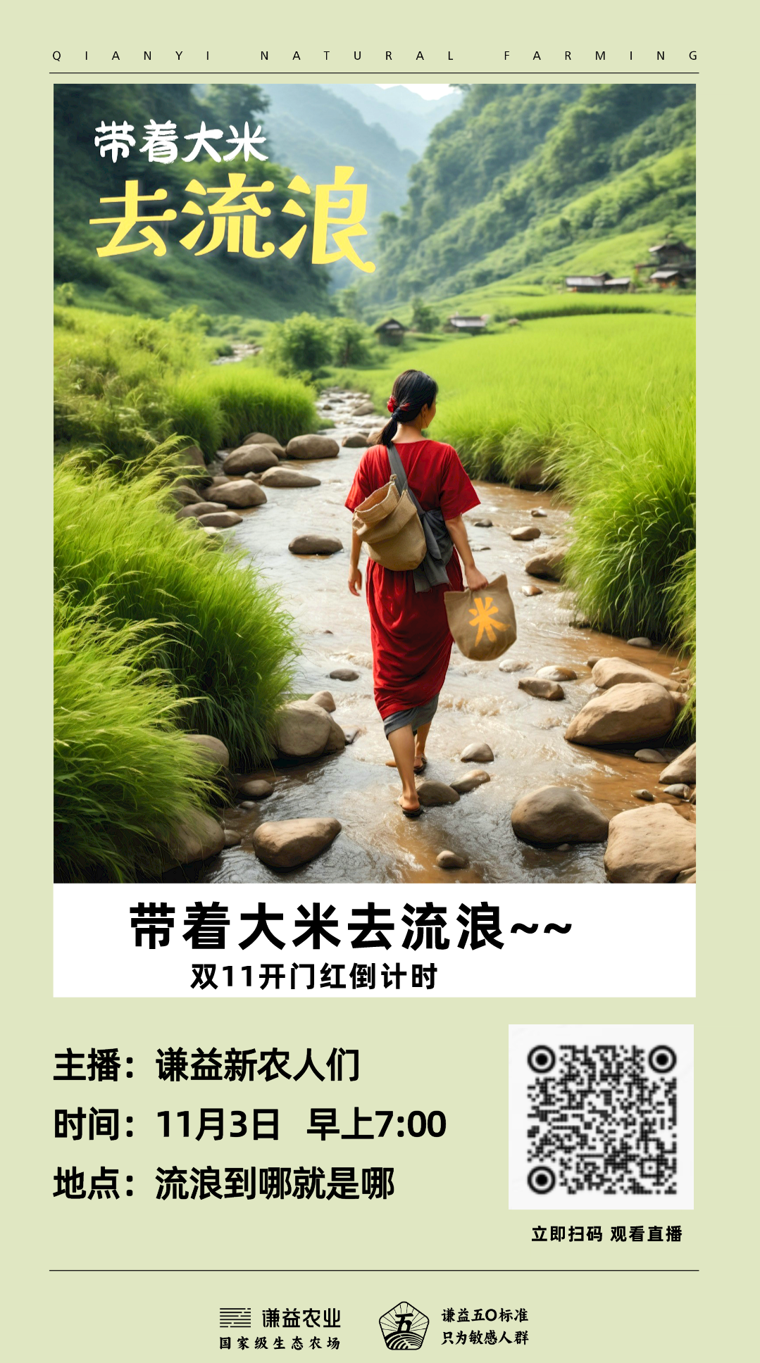 今天,大家可以跟随我们的脚步,和大米一起去流浪——去到它生长的地方,去寻找它生命的源头,去到炊烟袅袅的乡野间,取一瓢大自然中的山泉水,就地煮一碗温暖人心的大米饭。一整天,我们回归生活本该有的样子:早起晨练、于阳光正好时晒背、吃饭、喝下午茶、赏夜空……