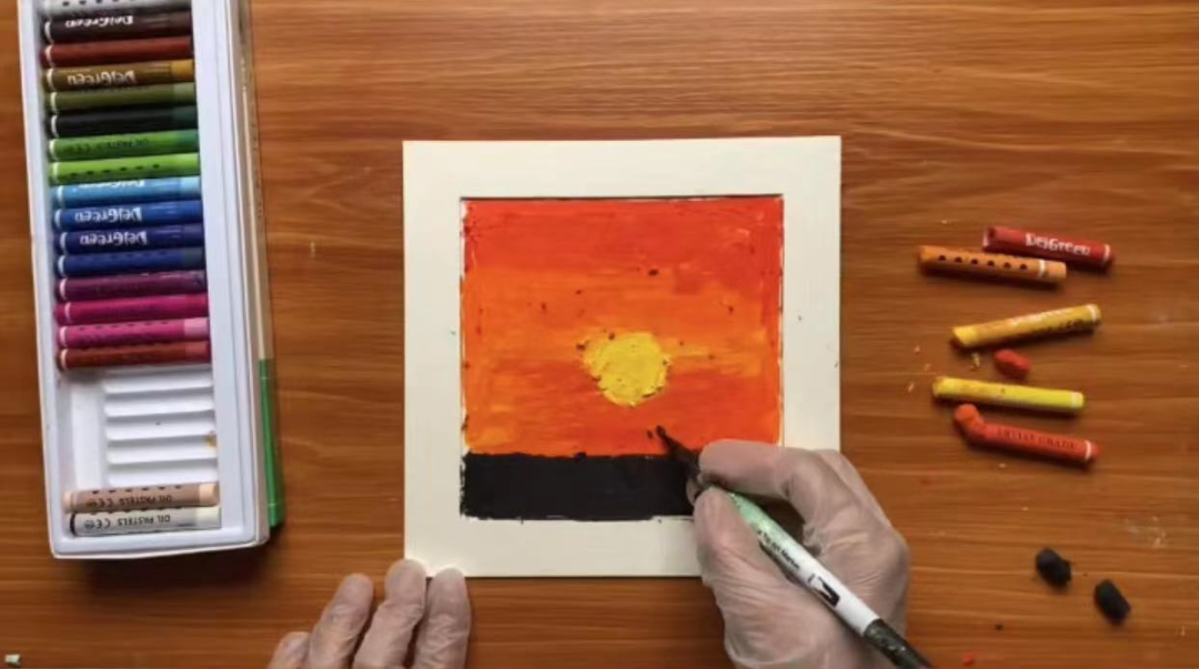 我们用彩研油画棒可以擦淡许多,而油性油画棒还有一大截: