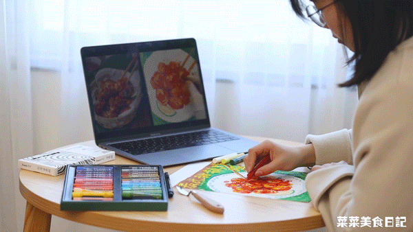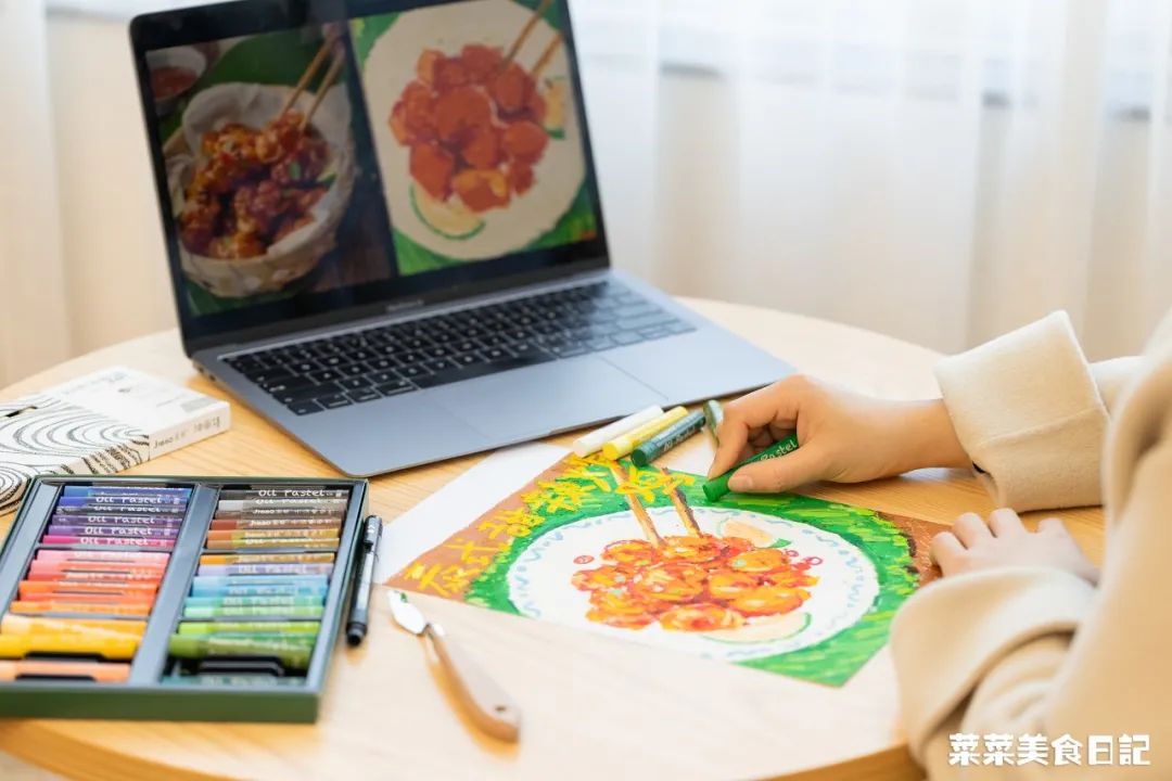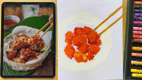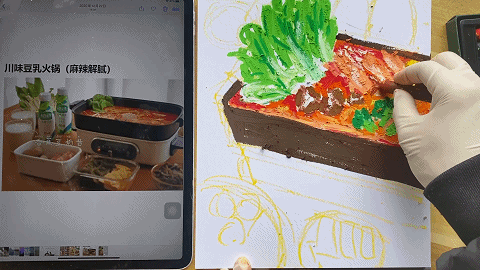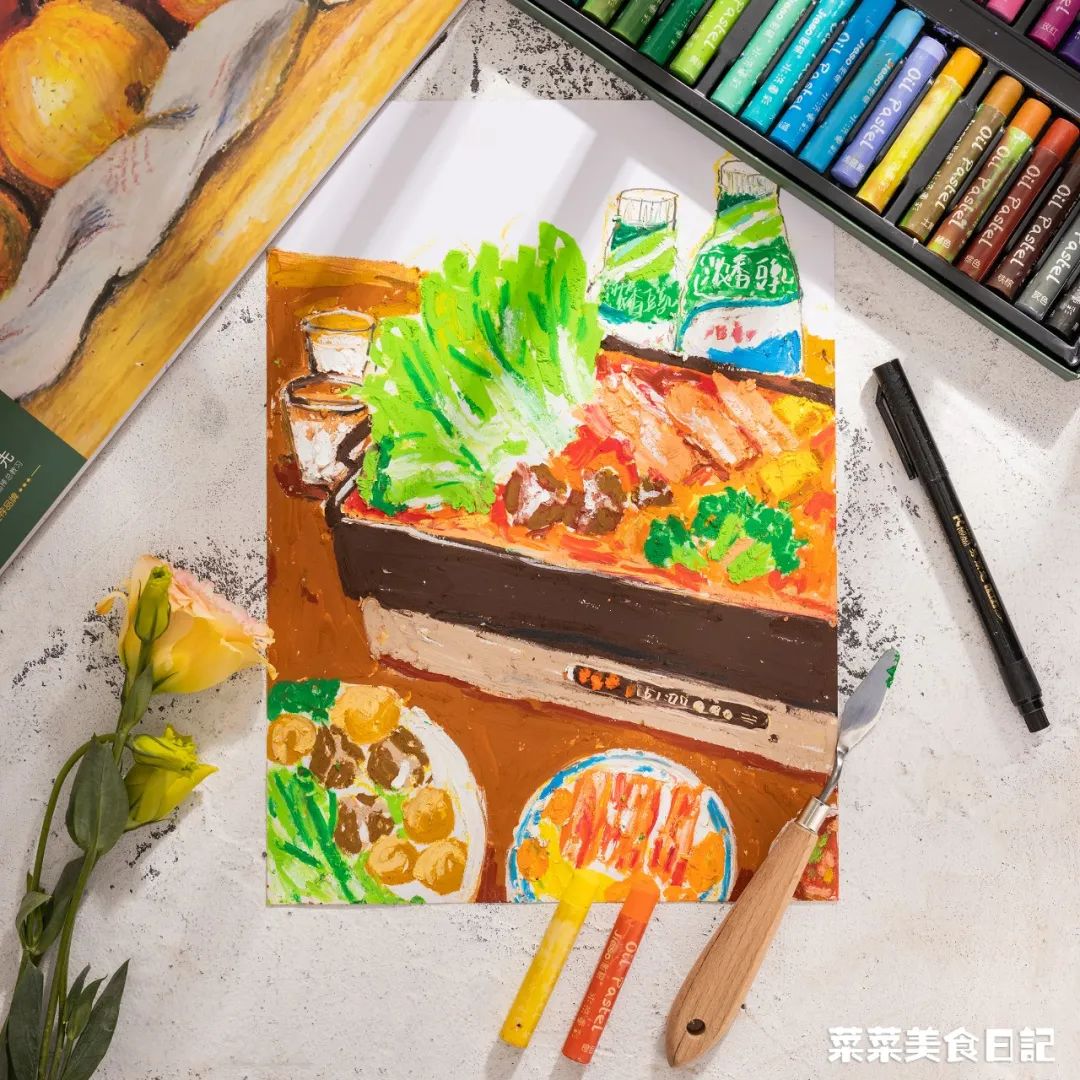 整个绘画的过程中,看色彩越来越丰富,美食在眼前浮现,感觉整个肾上腺素都在飙升,人生很满足很快乐。