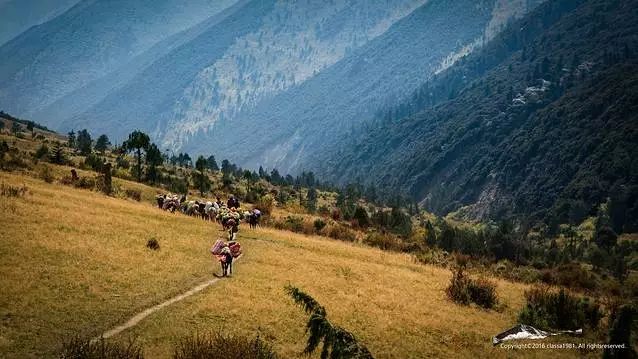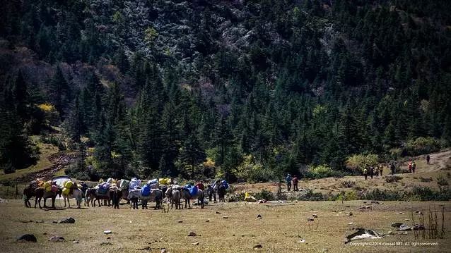 马队在老榆林的电站处等着我们,在放下重装包后我们开始了正式的徒步之旅。3400 米的海拔没有给大家带来不适,压抑了许久的激情终于爆发出来,小宇宙燃烧着向前的心。