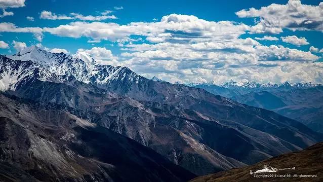 随着山势蜿蜒,黄色的土地上成片的雪山渐渐露出了峥嵘。伴随而来的就是惊叹、欢呼、呐喊的声音。大多数第一次见到雪山的人,兴奋和激动溢于言表。而那些沉默的,象征性的瞄一眼又继续赶路的,大概就是传说中的老驴了吧。