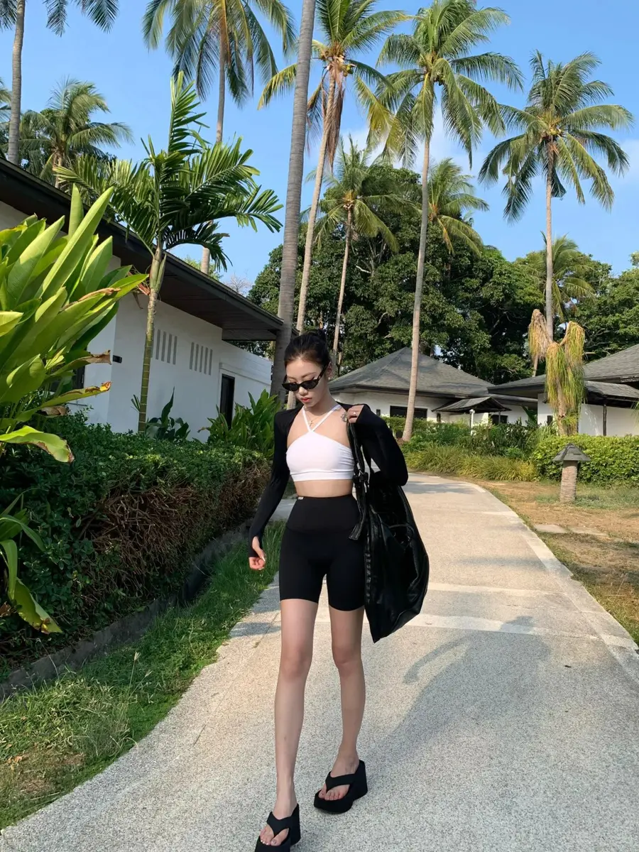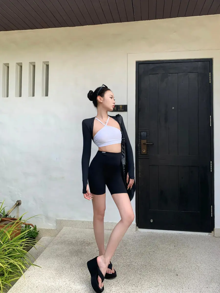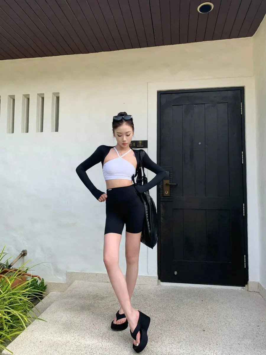 身边喜欢鲨鱼裤面料的姐妹,也会把它当打底裤穿,清凉贴合肌肤,很Nice