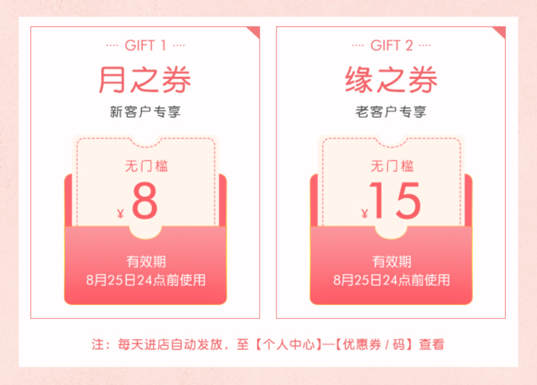 月之券(新客户专享):8元无门槛优惠券