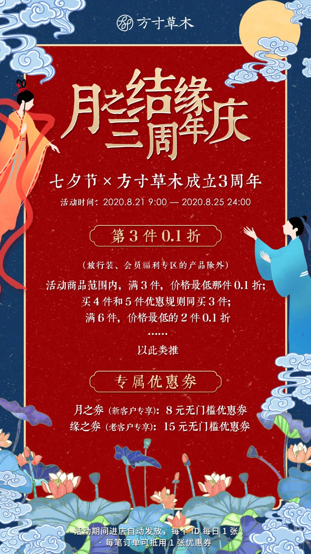 第三件0.1折,方寸草木三周年×七夕节诚意放送!