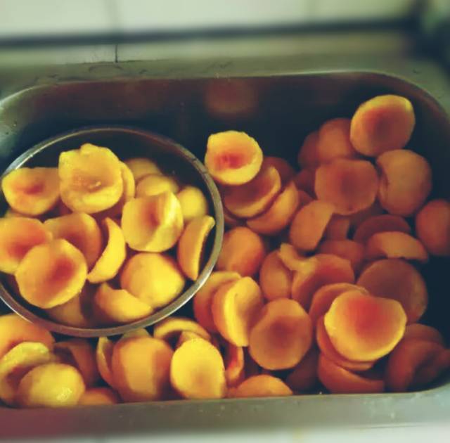 挑选八、九分熟的黄桃,硬实的,表面金黄透着红,伟诗告诉大家个经验,黄桃越酸,做出来的罐头越甜。