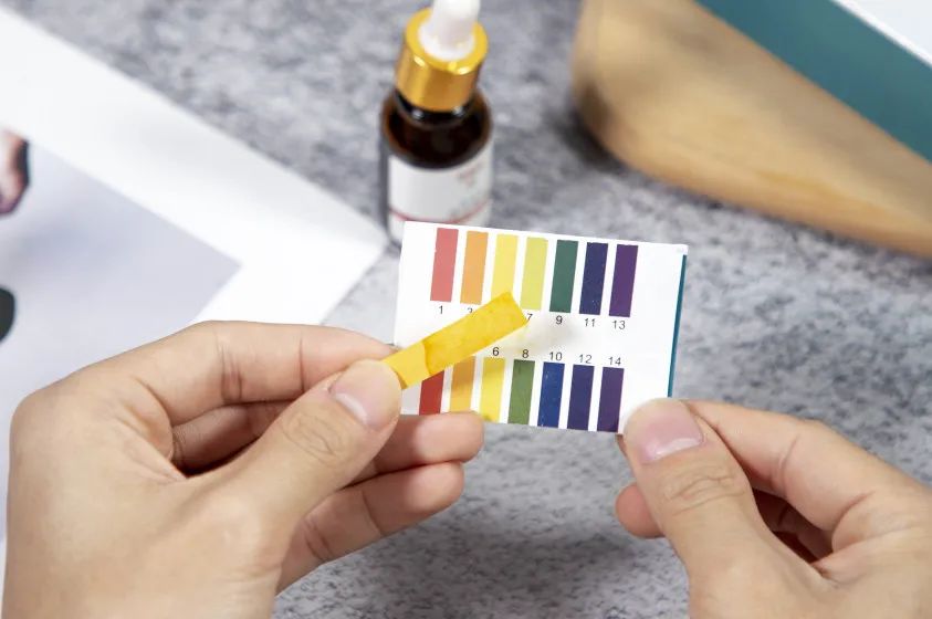 我们还进行了PH测试,数值为5-6弱酸性,接近人体的酸碱环境,直接涂在指甲缝里也很安心。