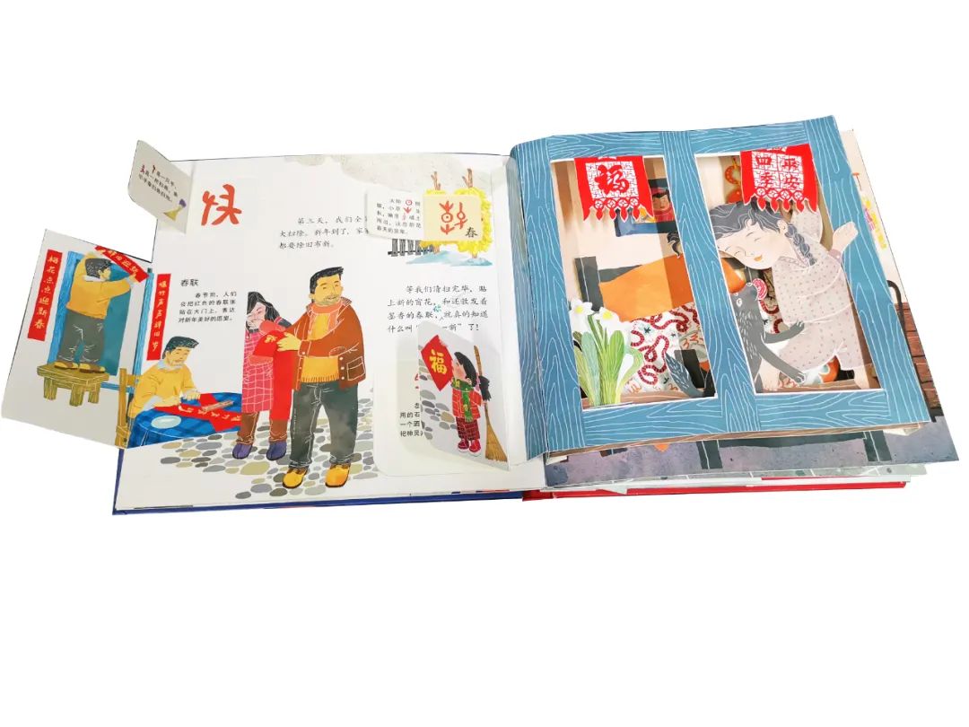 精致的图画加上别有洞天的纸艺技术,春节的画面感跃然纸上,孩子看了拍手称赞!