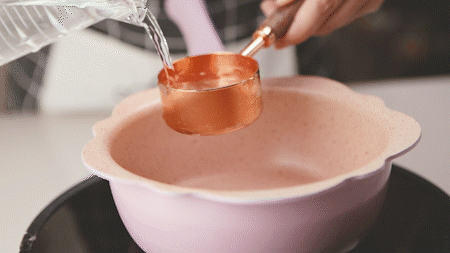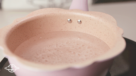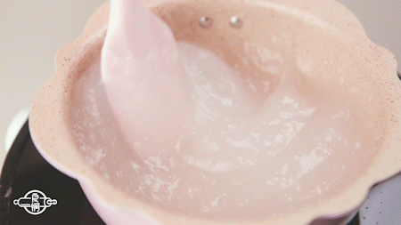 将淀粉浆一边缓缓的倒入锅中,一边快速的划圈圈搅拌,整个过程搅拌不能停