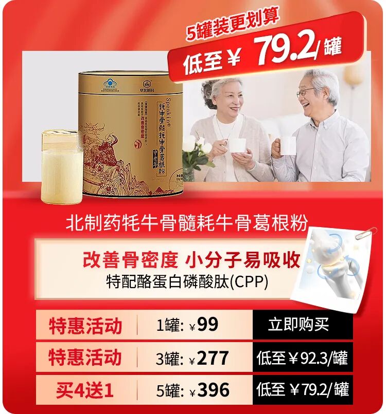 以牦牛骨为核心,又加入牦牛骨髓、葛根粉、酪蛋白,合理组方,小分子、补得进、好吸收!