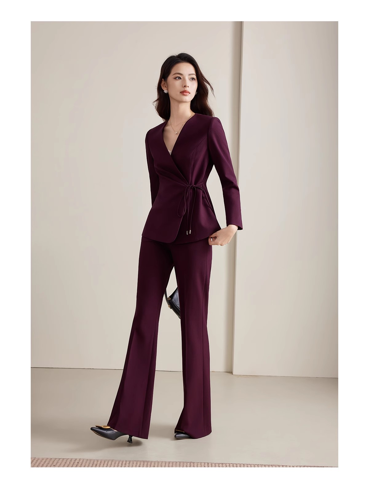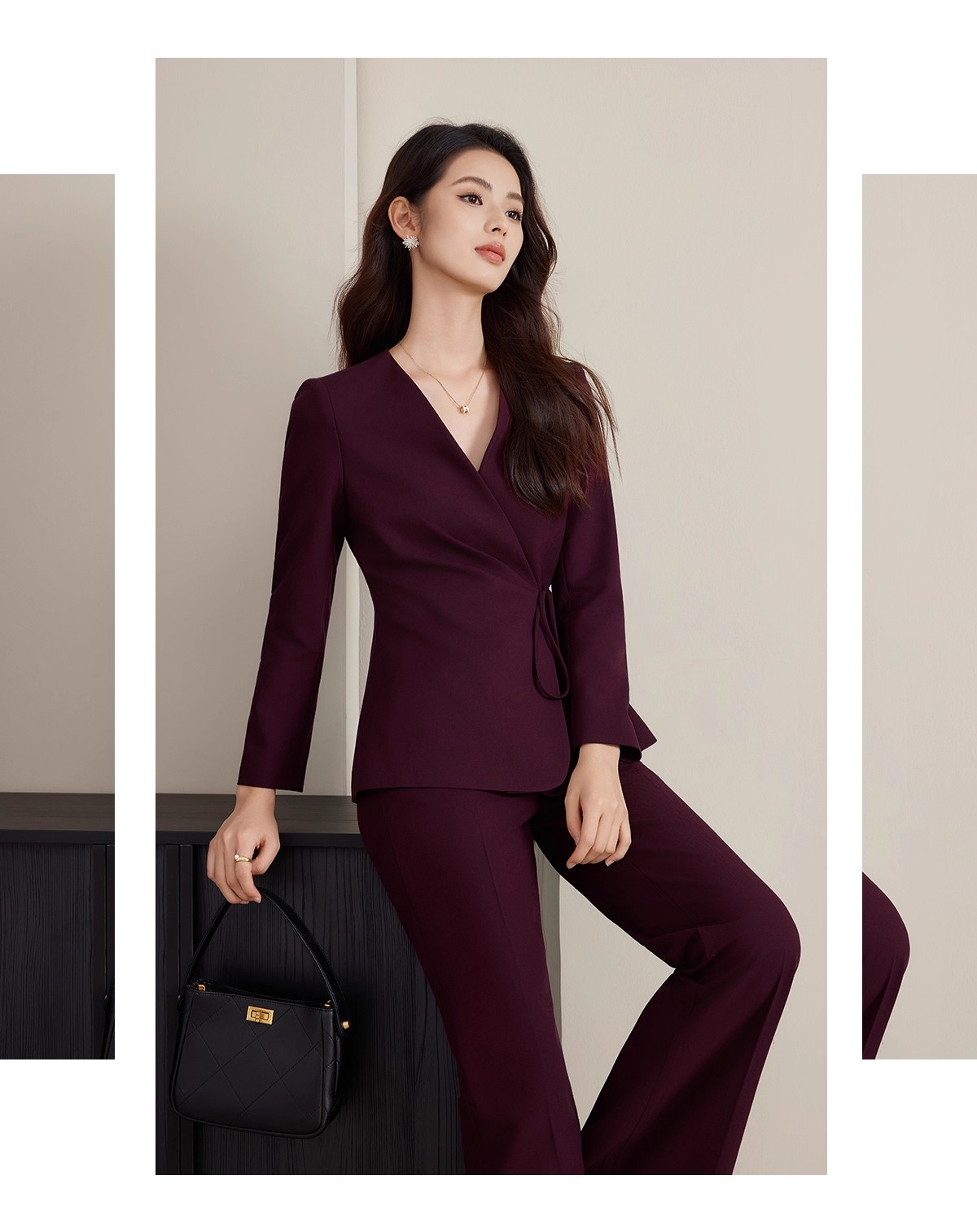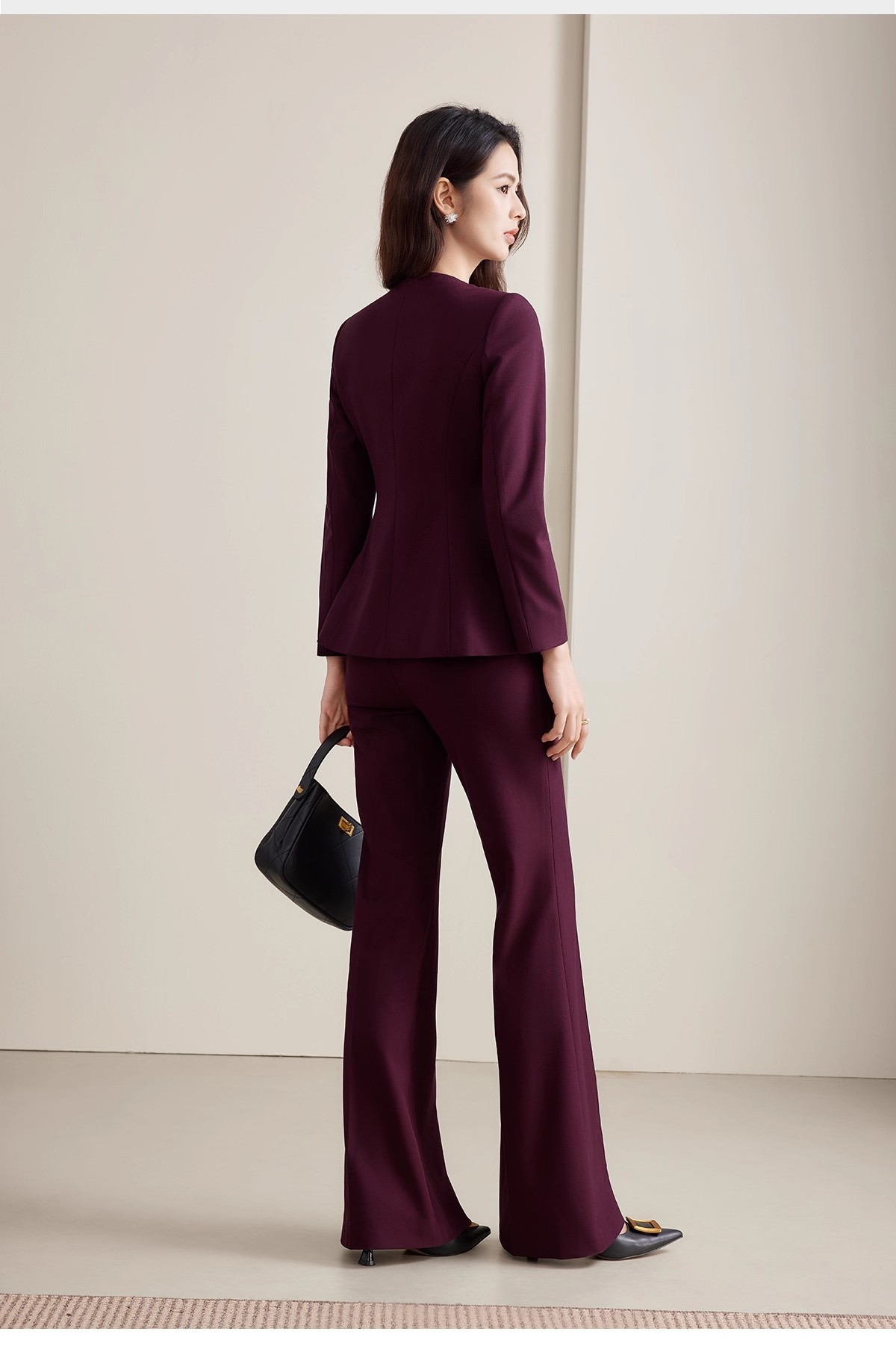 深醇的酒红色调,是这套穿搭的灵魂,