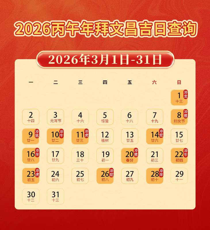 ● 择吉日吉时。可直接对照以下拜文昌吉日查找。