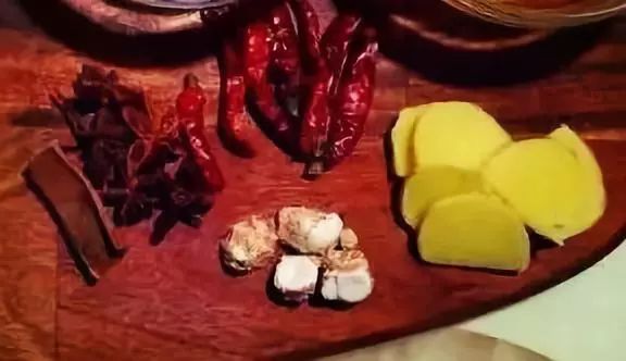 3、干辣椒(2个),姜片(2-3片),白芷(1小块),大料(1个),桂皮(1块),放旁边备用;