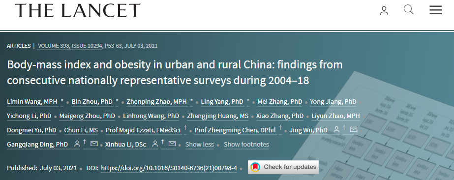 2021年,中国疾控中心领衔的研究团队在《柳叶刀》杂志上公布了中国成人身材的最新数据。