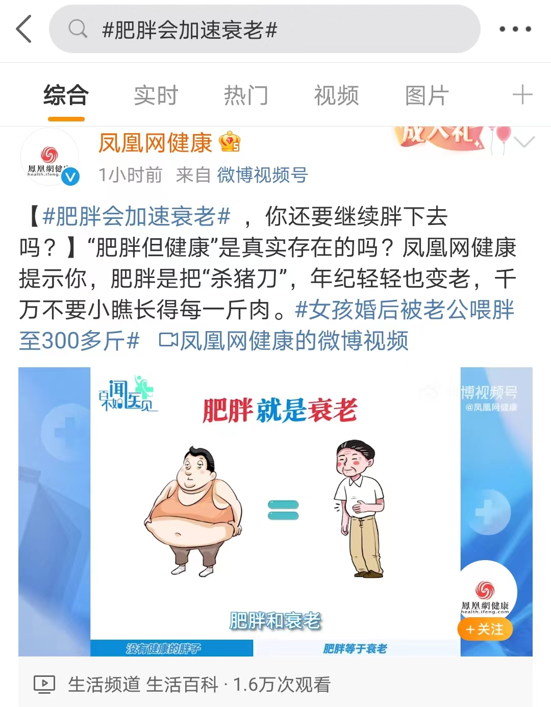 不久前,一个一个#肥胖会加速衰老#的话题冲上了微博热搜!