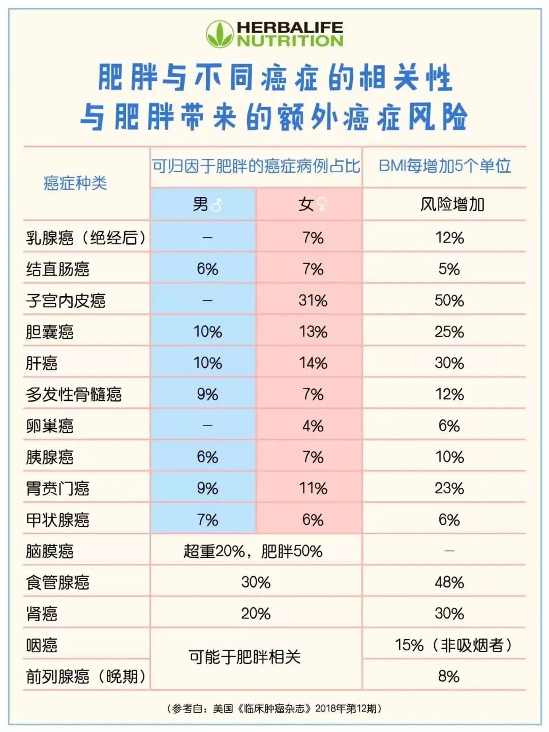 由于胖子的不自律,健康细胞正在被各种癌细胞骚扰着。详细名单可以看下面这份“肥胖与不同癌症的相关性与肥胖带来的额外癌症风险”的表格,从数据里可以清晰地看到,与肥胖相关的癌症足足有17种!
