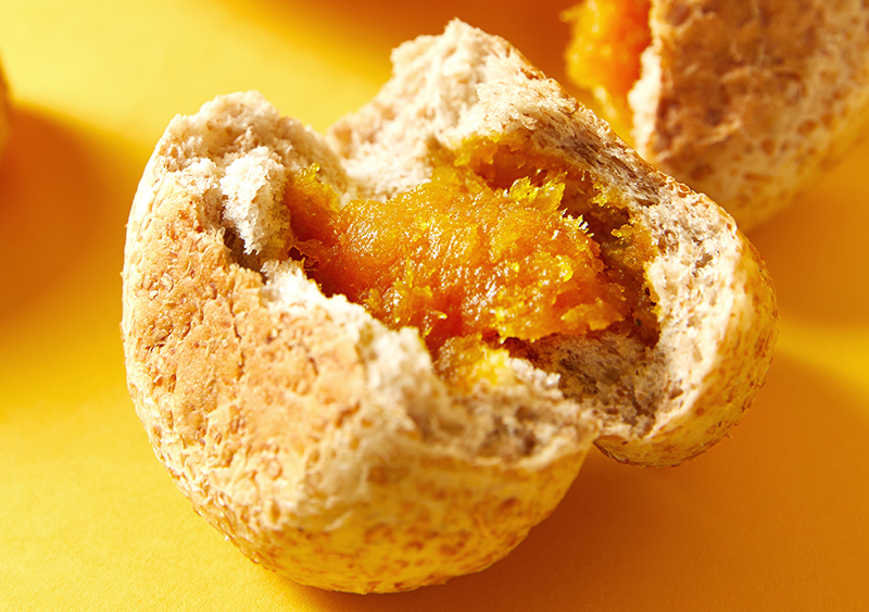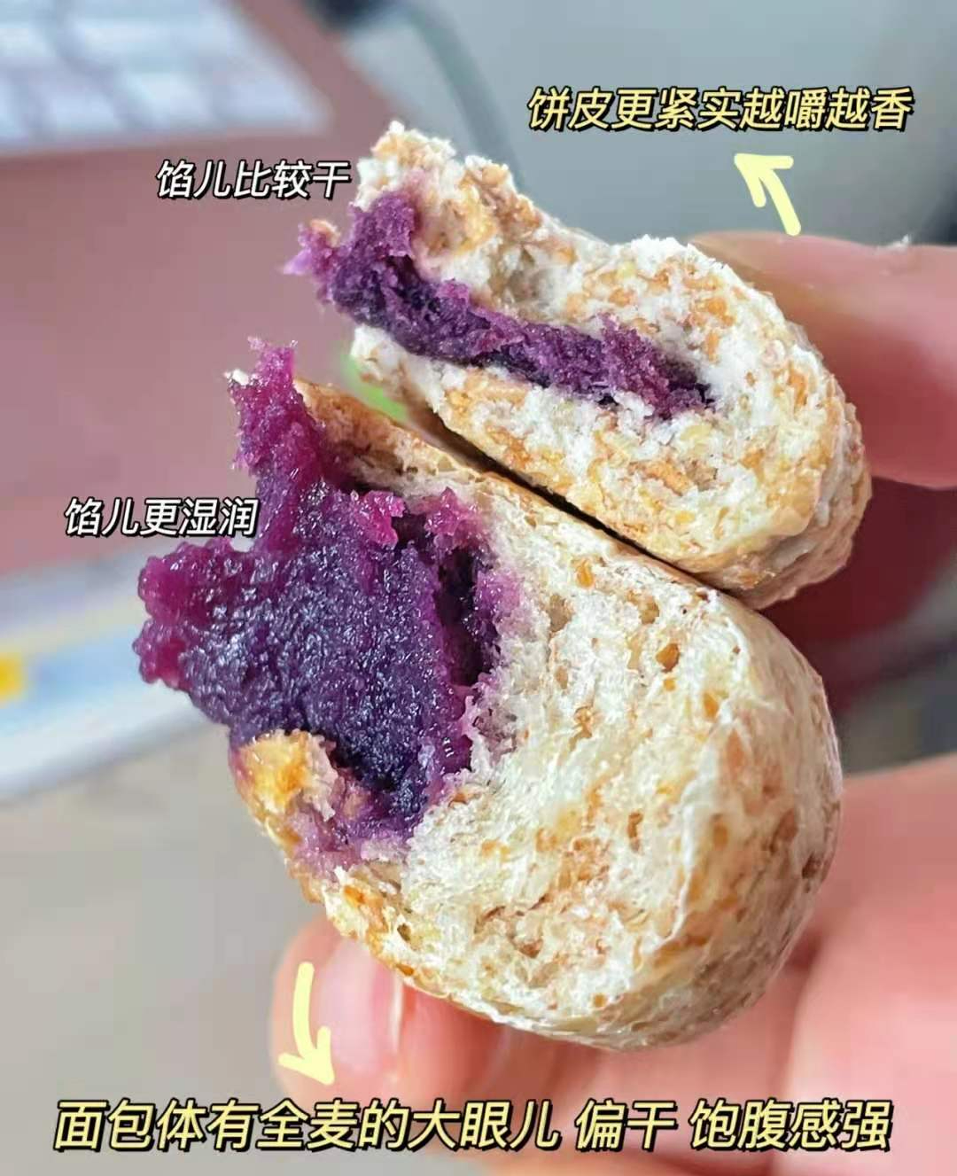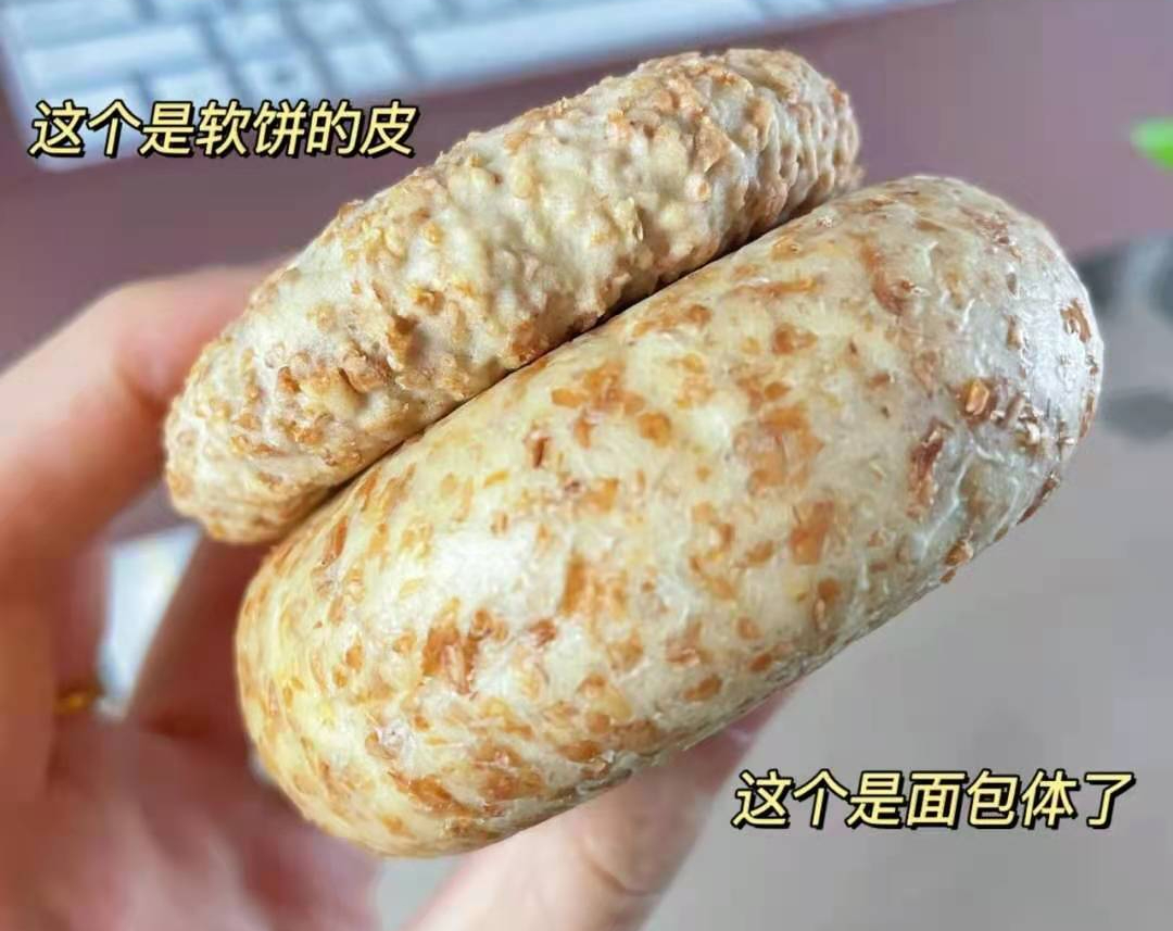 胖墩墩的外表更像是夹心欧包,不过不同于市面上的普通夹心欧包,它的饼皮用的是全麦粉制作的真全麦,不掺小麦粉。