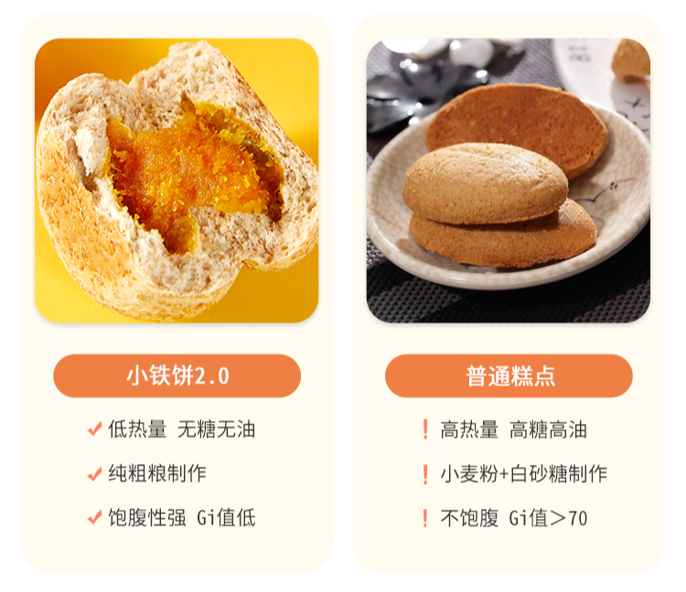 无糖无油,真正的低热量,而且每一个都是粗粮制作,无论是饼皮的全麦,还是内馅中的原料,饱腹感更强,GI更低!