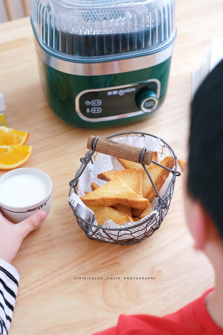 5、东菱空气炸锅预热几分钟,放入吐司角,选择“薯条”功能,温度160度,时间20分钟。