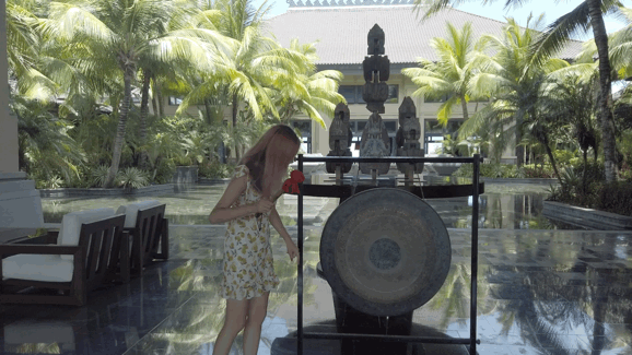 原来这是莱佛士特有的迎宾仪式,让客人敲响大锣开启体验!这样热闹且别开生面的欢迎礼,酒店君爱了!kuang~~kuang~
