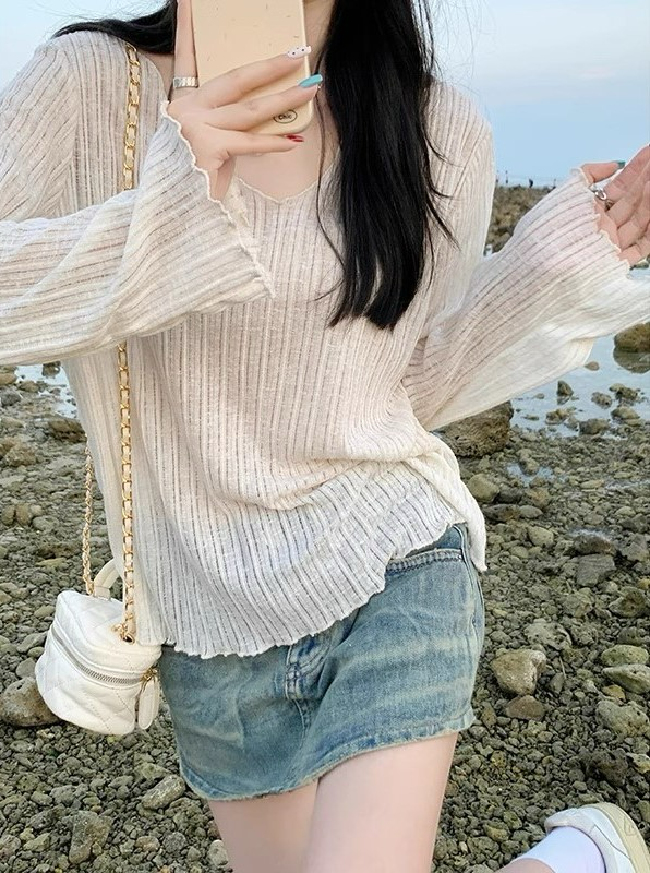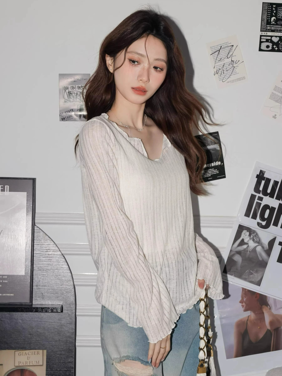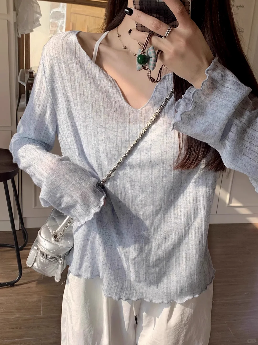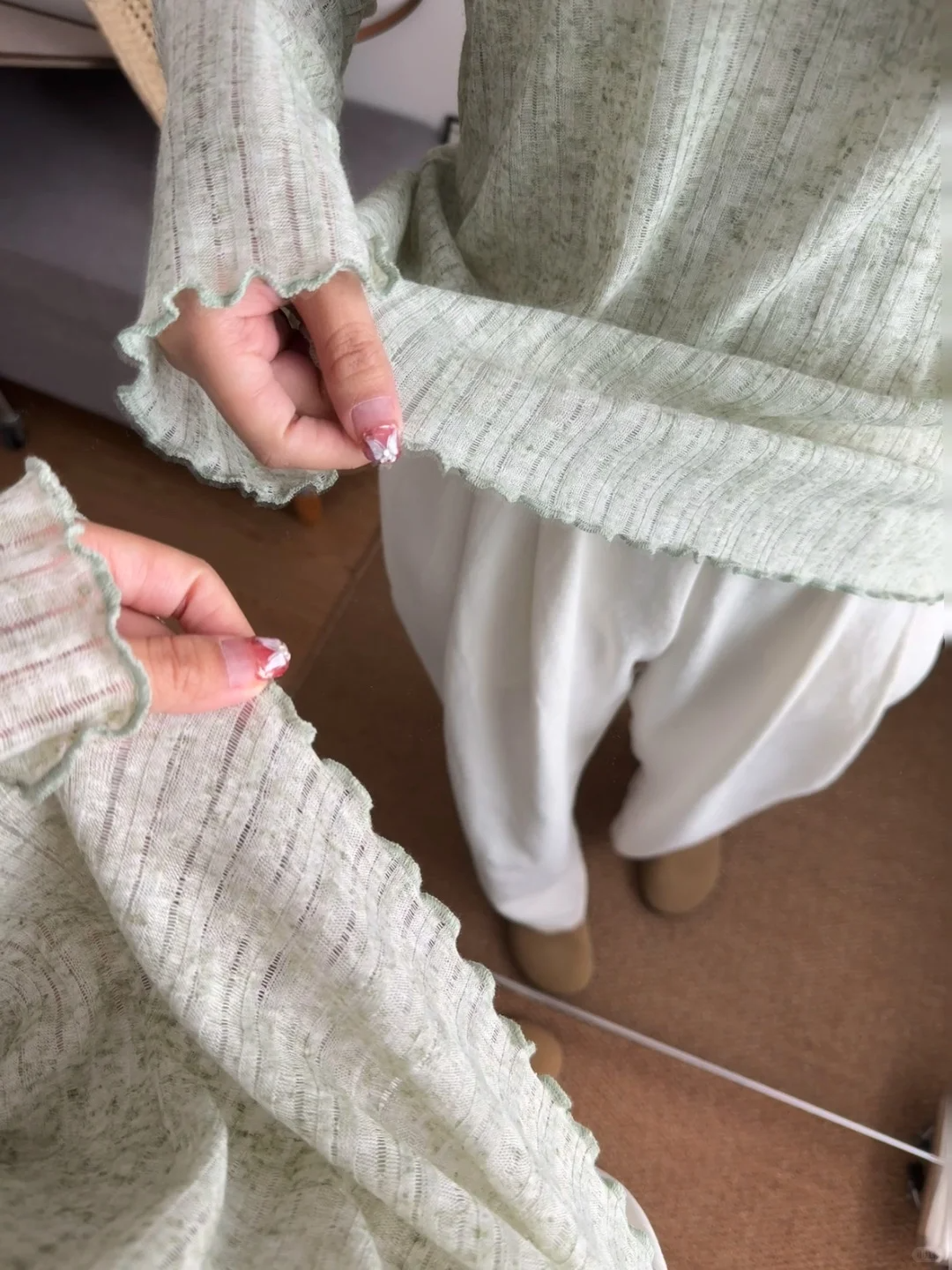 姐妹们!这件「法式微透木耳边罩衫」不买血亏!!!