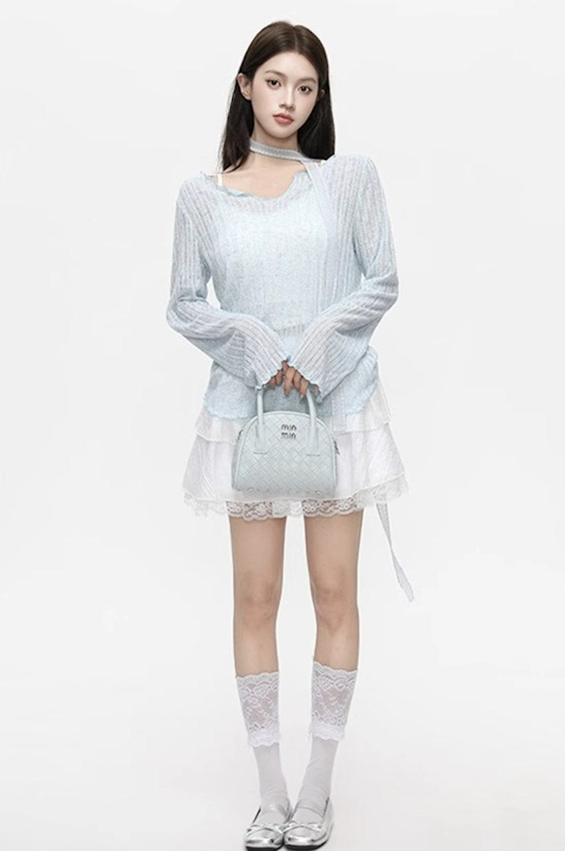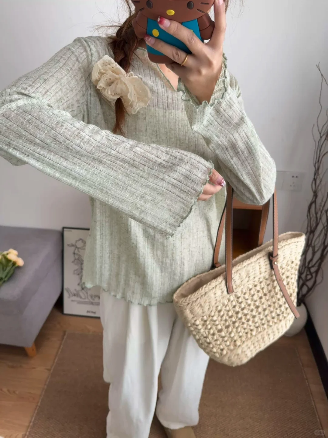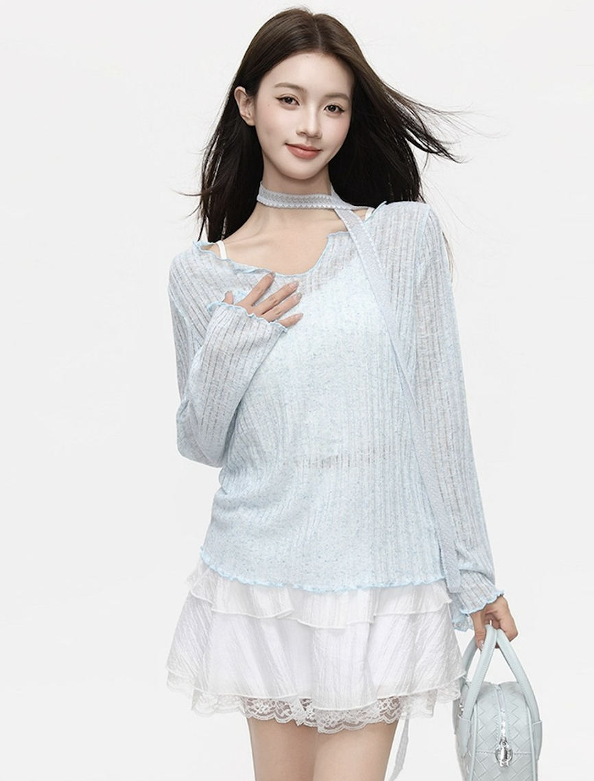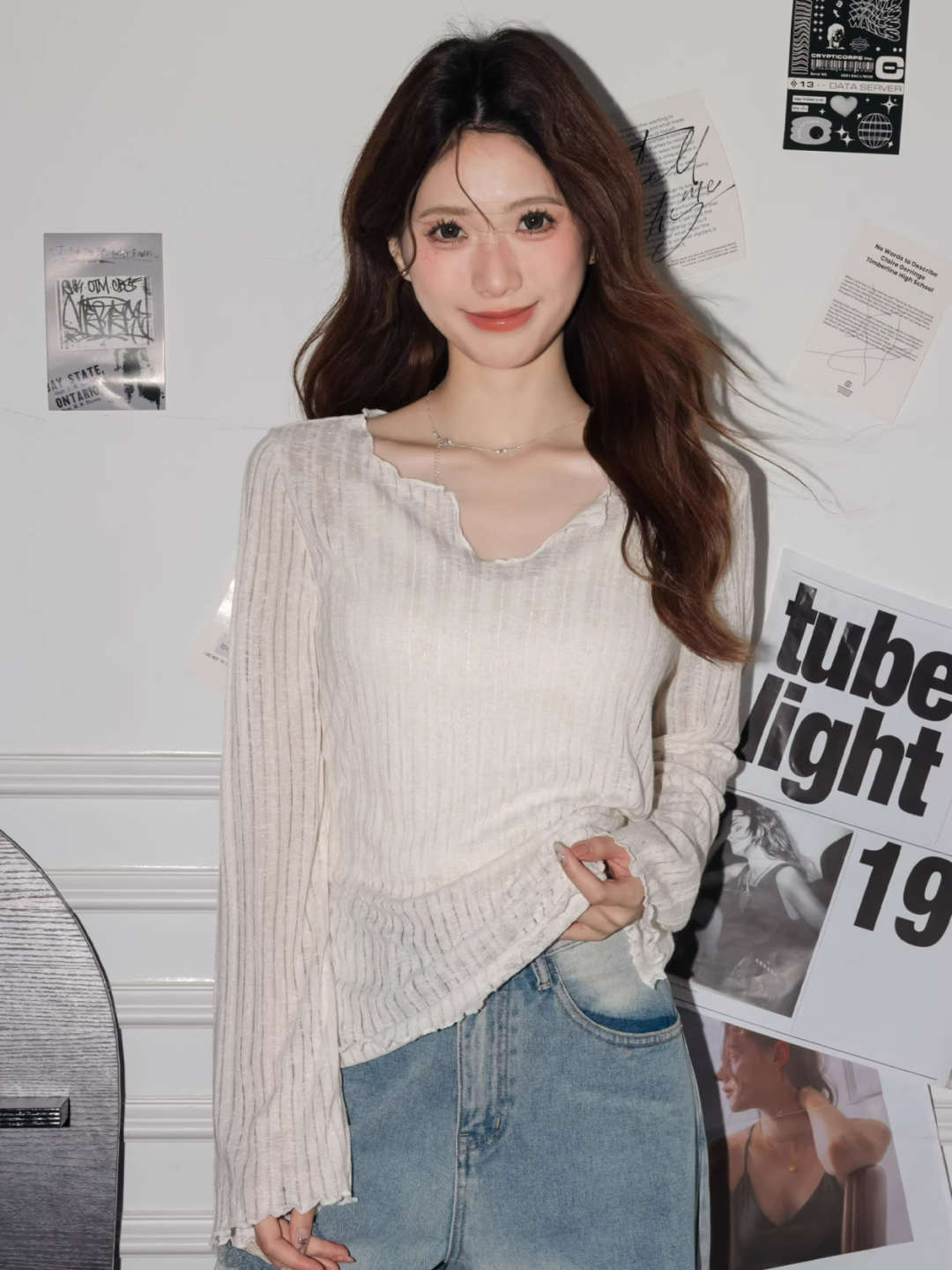 姐妹们!这件「法式微透木耳边罩衫」不买血亏!!!