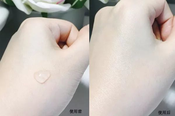 透明凝胶的质地,味道嘛,个人觉得比粉底液的味道要清新一点,还蛮好闻的。虽然里面带了金闪,在手上使用后,可以看出皮肤变的比较哑光了(但不是干)近看能看出一点金闪不夸张,个人觉得后续粉底上妆有服帖效果。