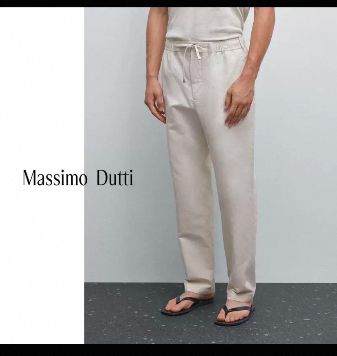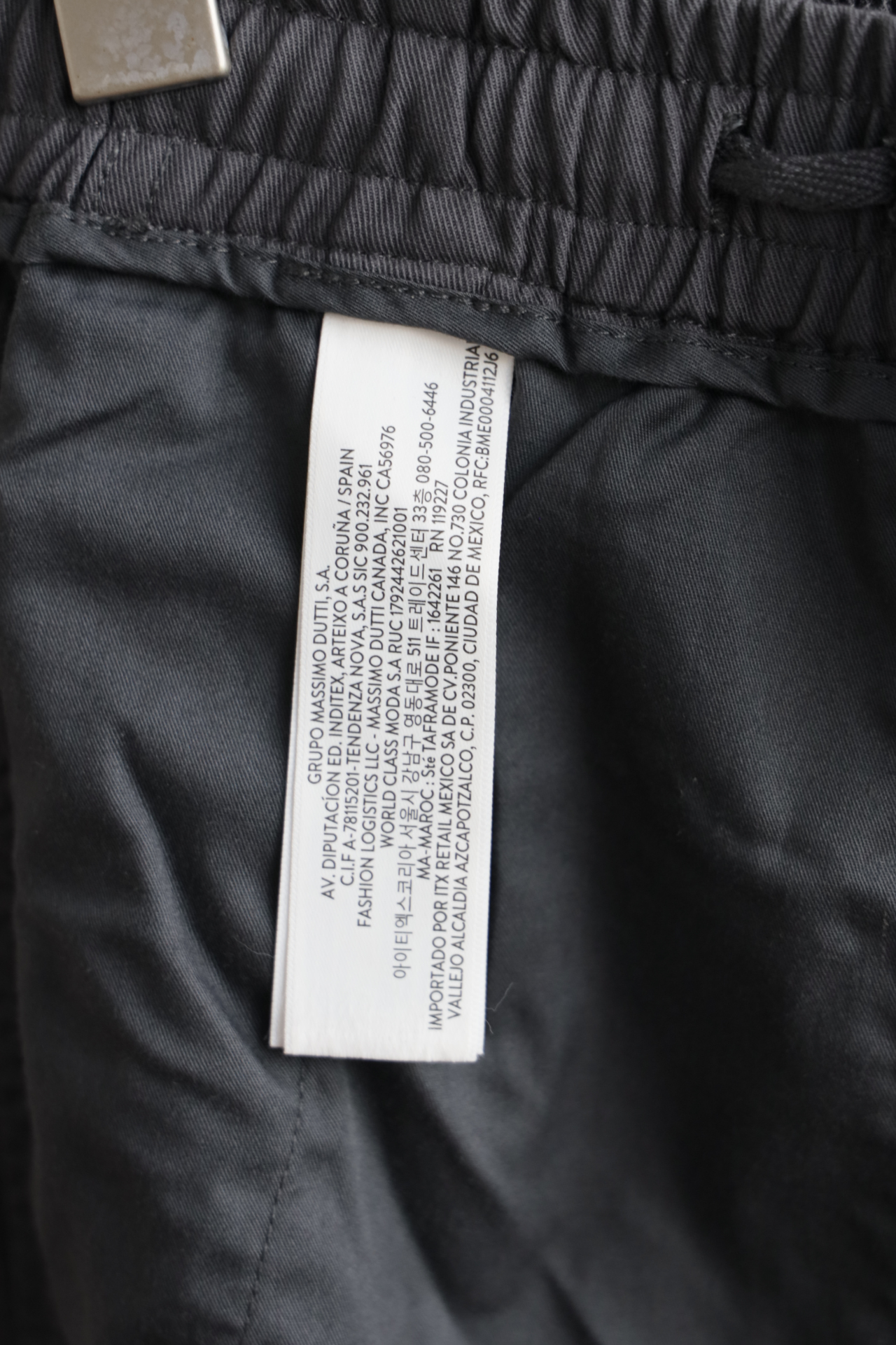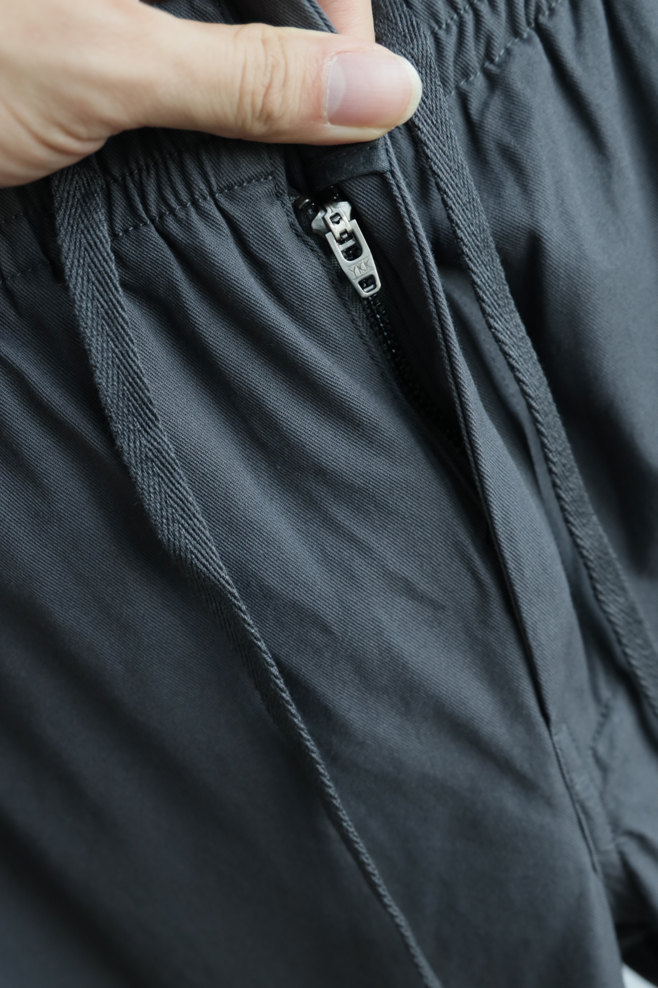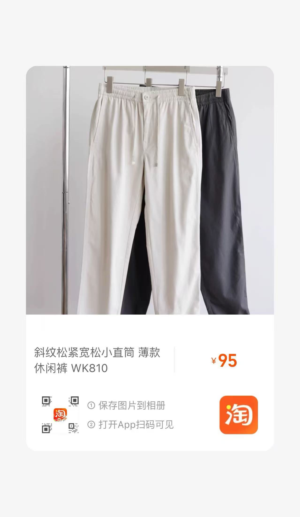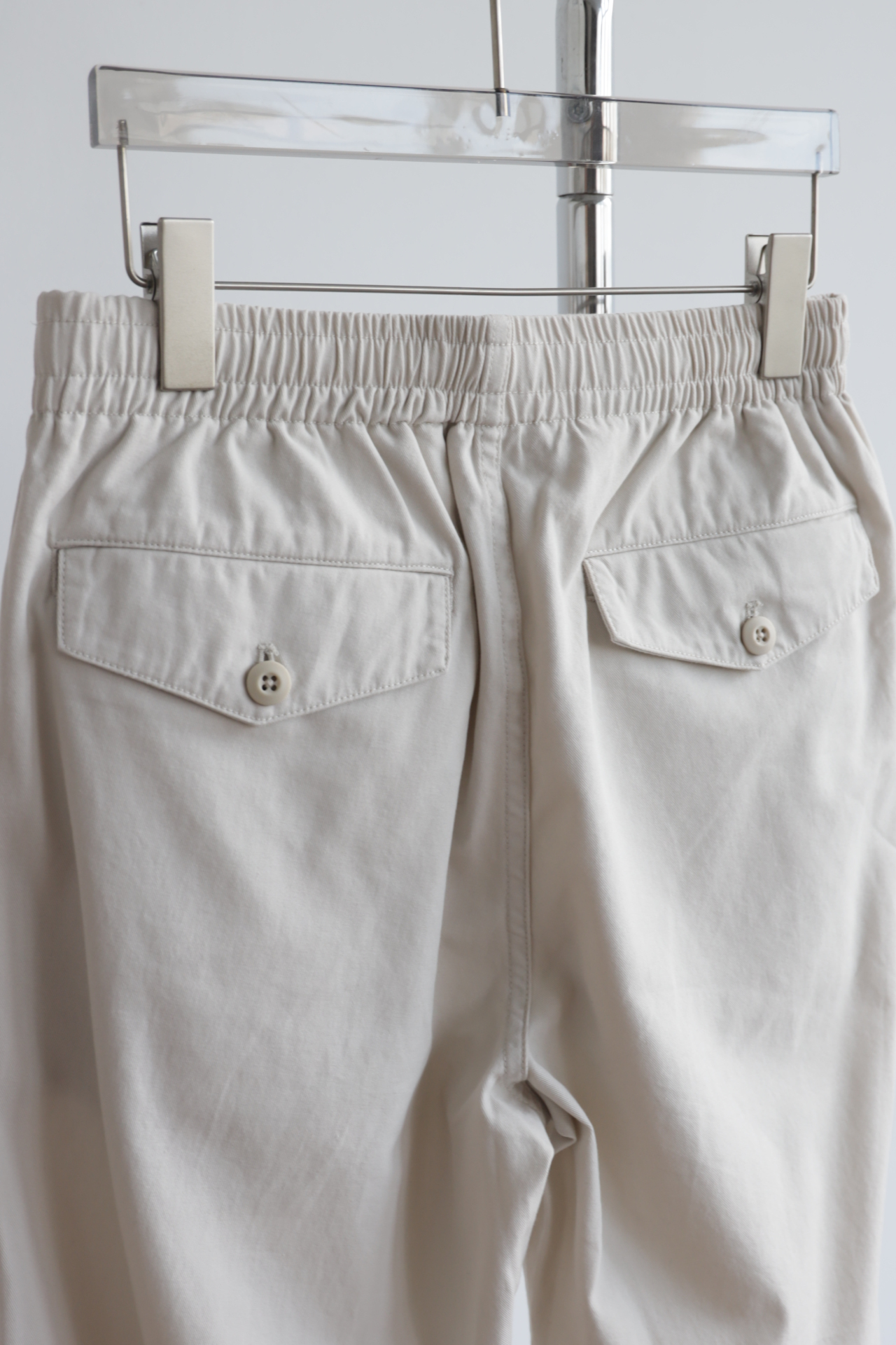棉涤混纺的斜纹布小直筒休闲式样,很友好的松紧弹力腰围+抽绳,上宽下窄的微锥版型