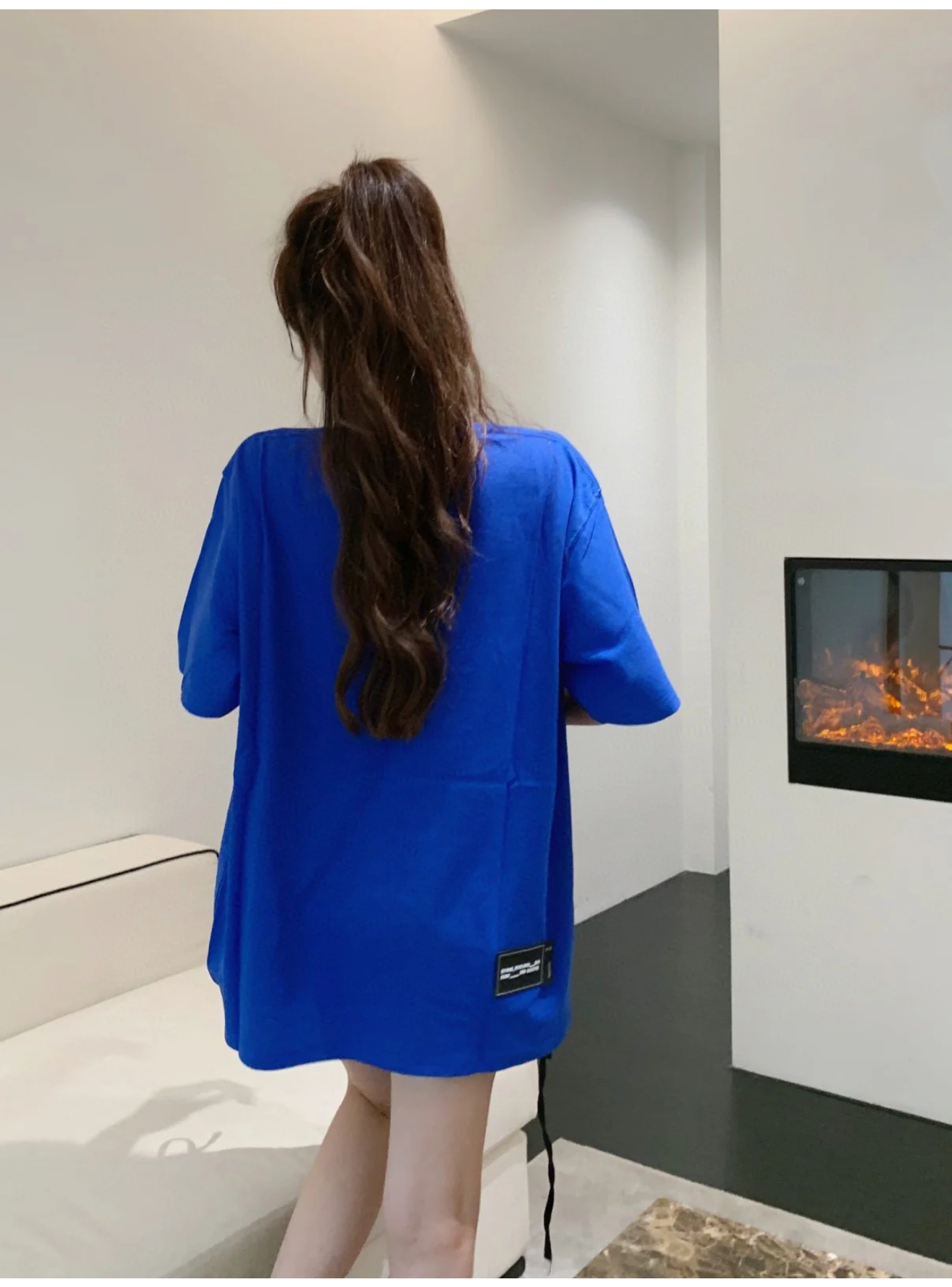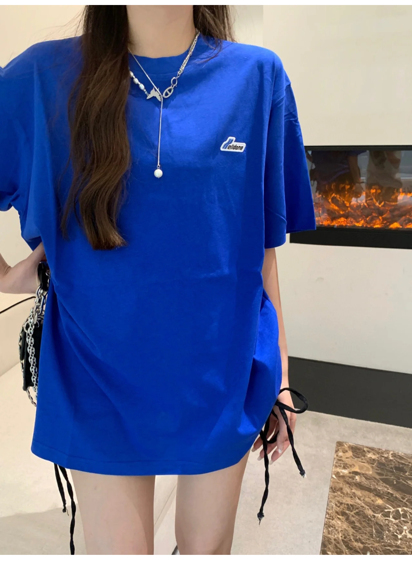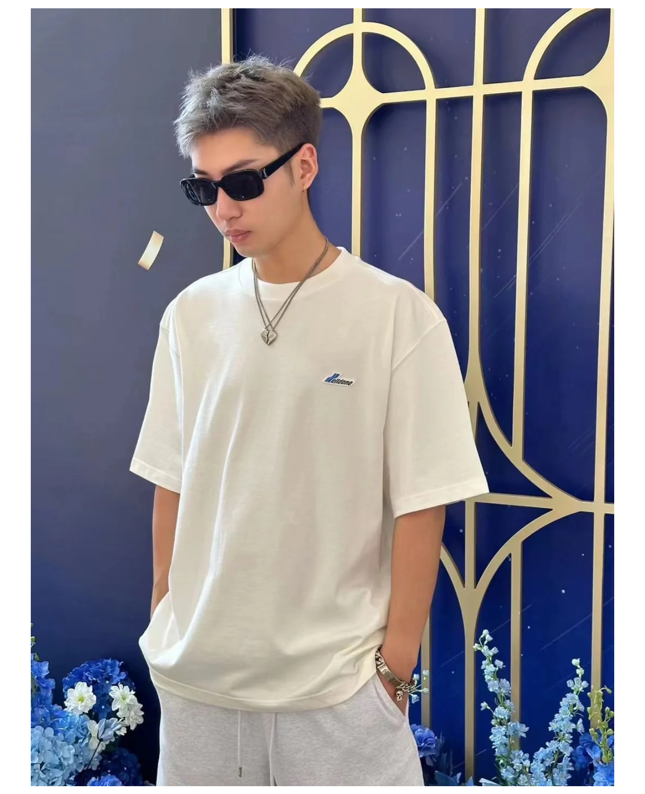W.D 情侣款 宽松廓形 高克重小标圆领T恤