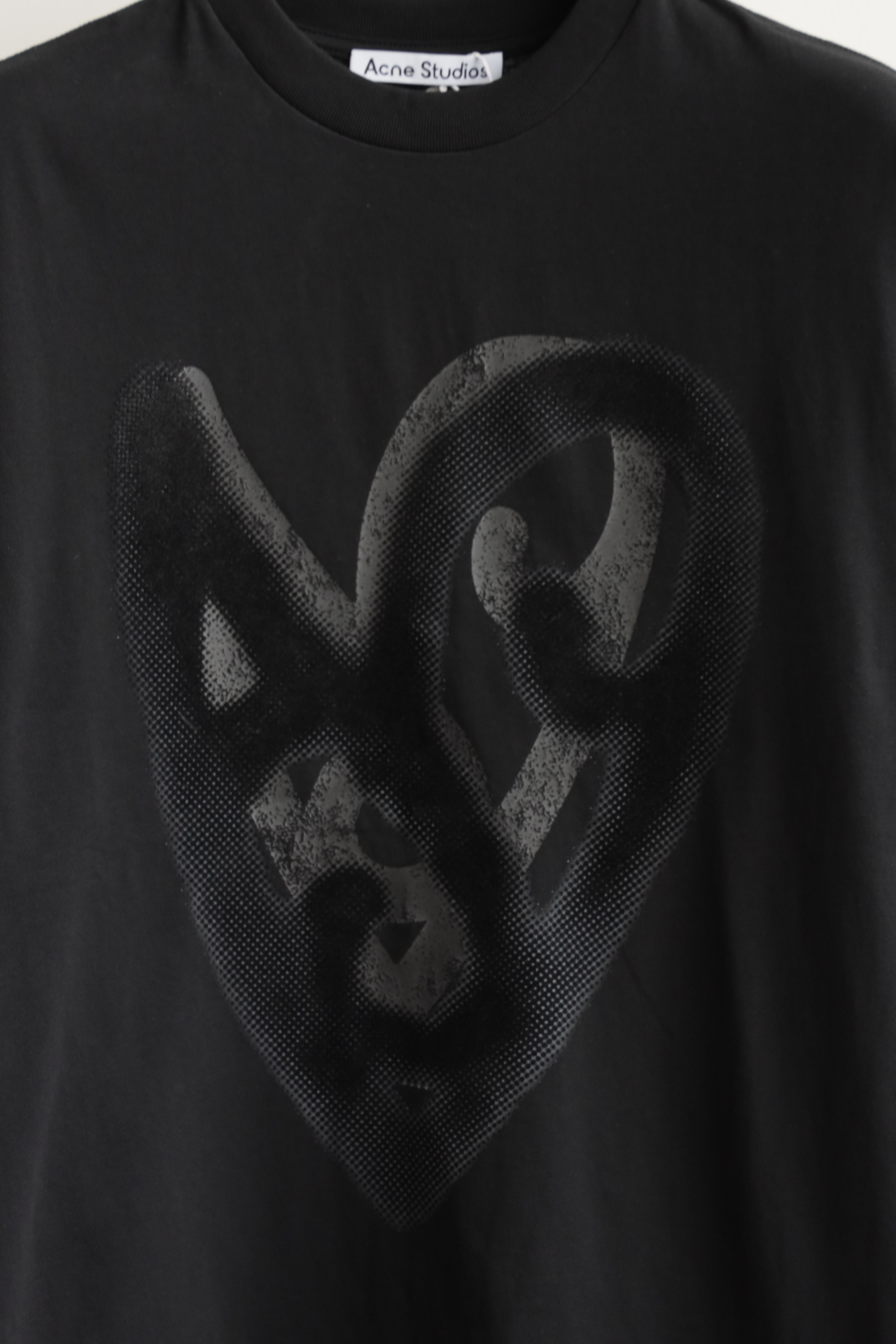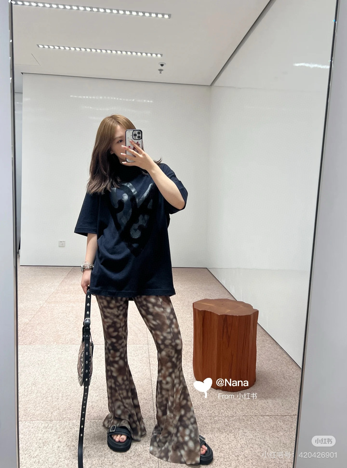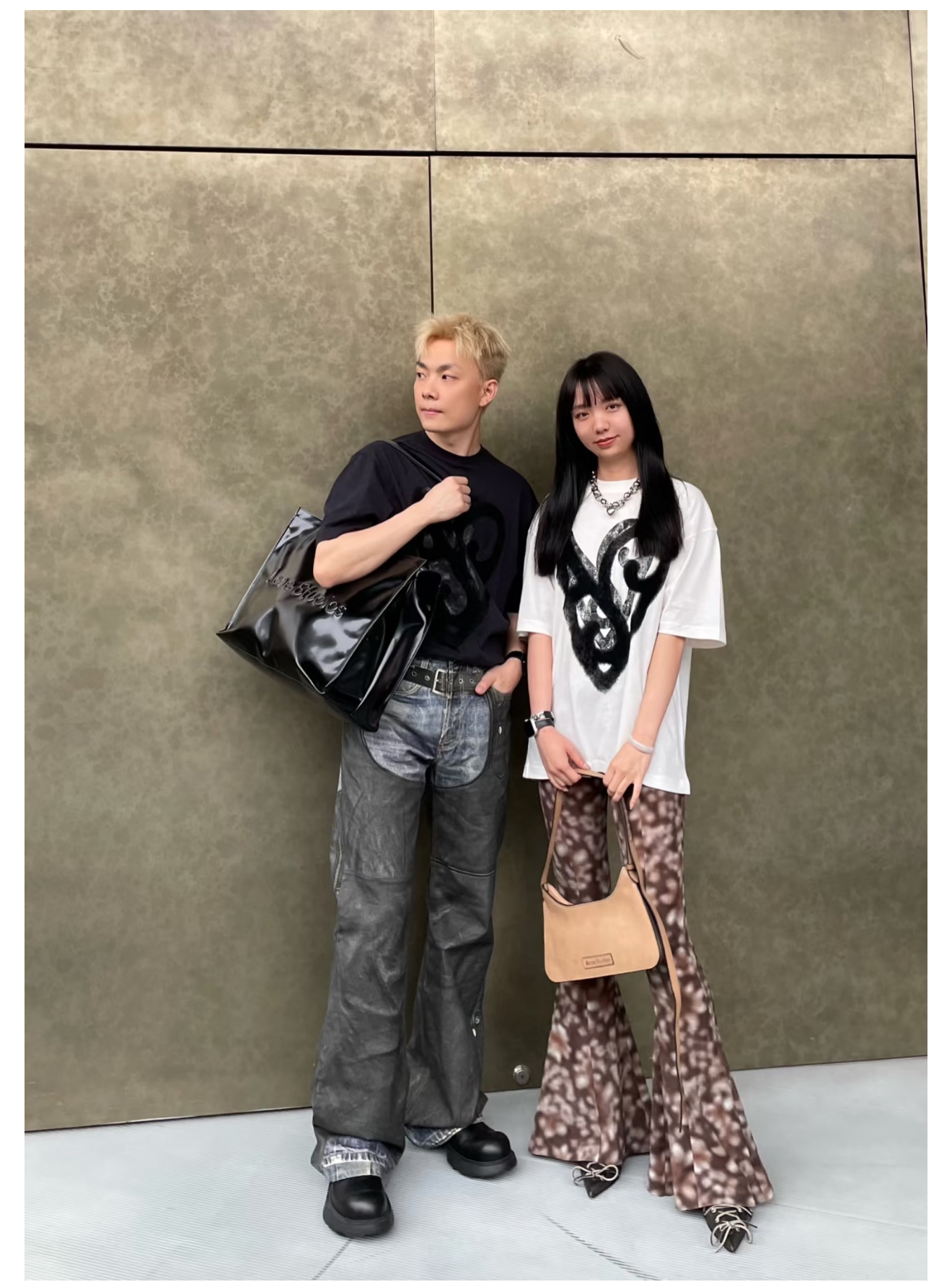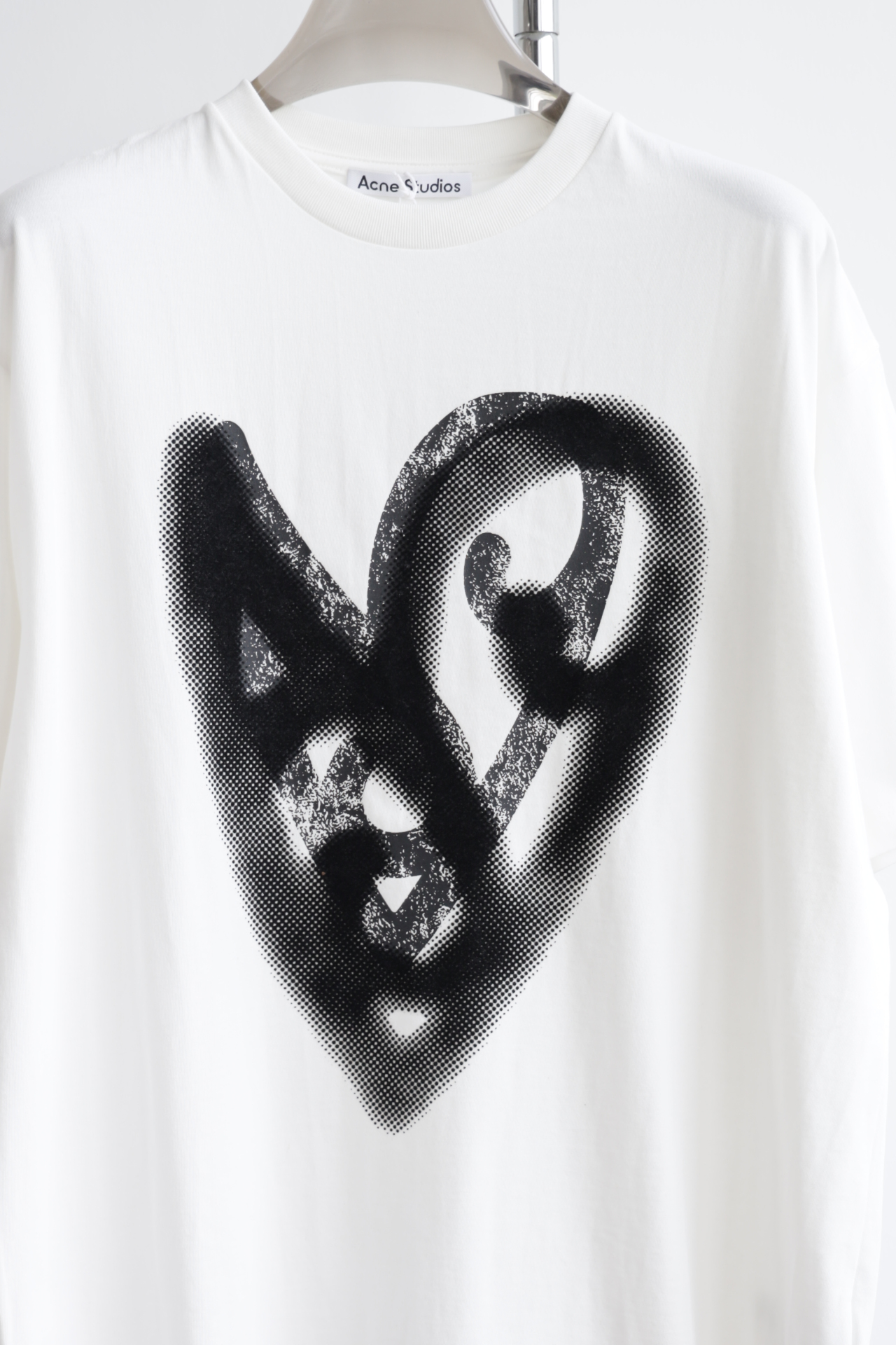 这件T恤的灵魂所在,是复古涂鸦爱心印花叠加植绒工艺、独特的笔触肆意挥洒,爱心的轮廓在抽象与具象间游走,复古的色调与随性的涂鸦风格相互碰撞。