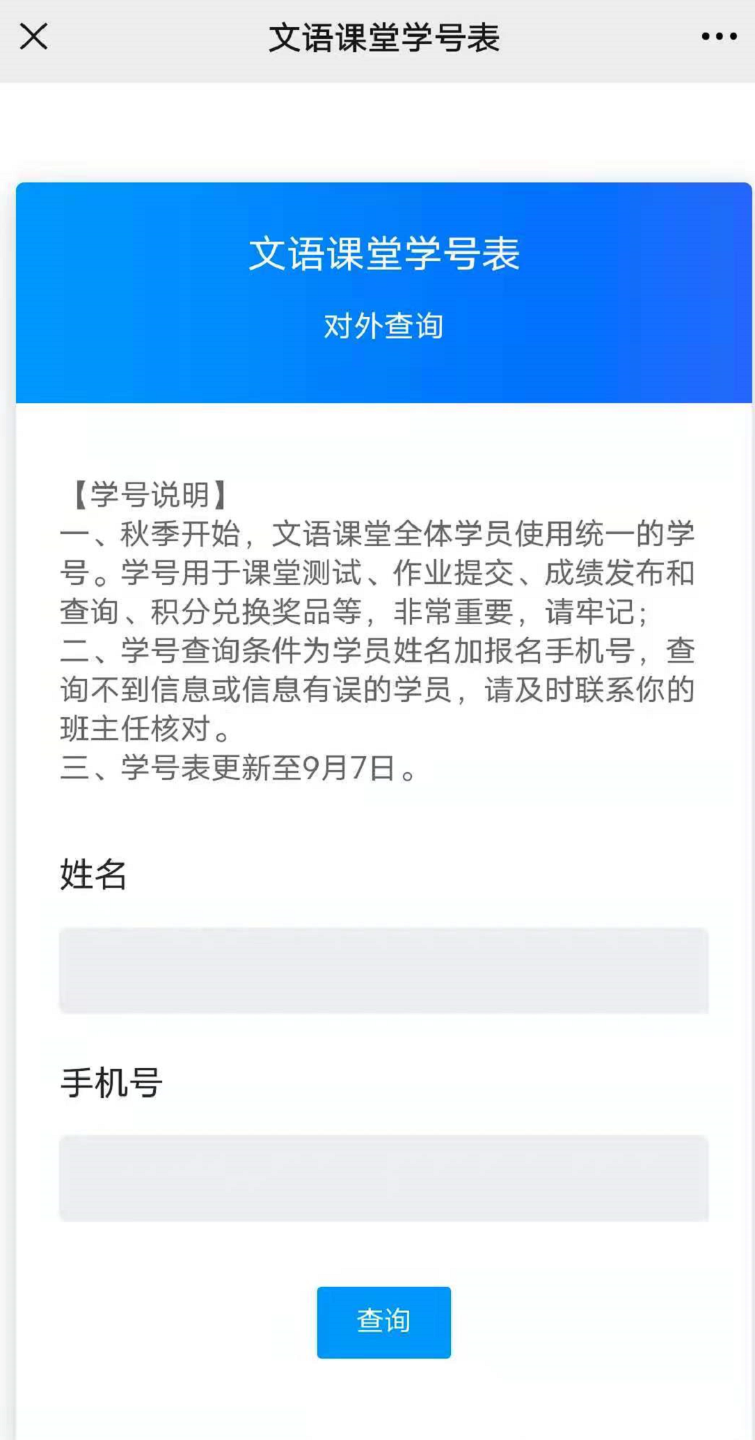 所有学科、所有学员统一编排学号。学号是课堂测试、作业提交、课堂课后答疑、积分管理、奖品兑换等内容的唯一依据,请牢记: