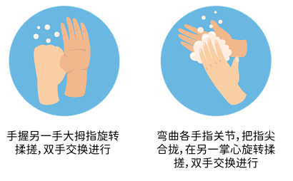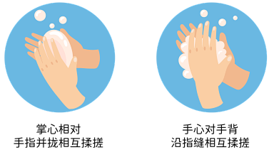 正确的洗手方式是用流动水和使用肥皂(洗手液)洗,揉搓时间不少于20秒。且按照“七步法”,认真清洁指尖、掌心、手腕各个部位。