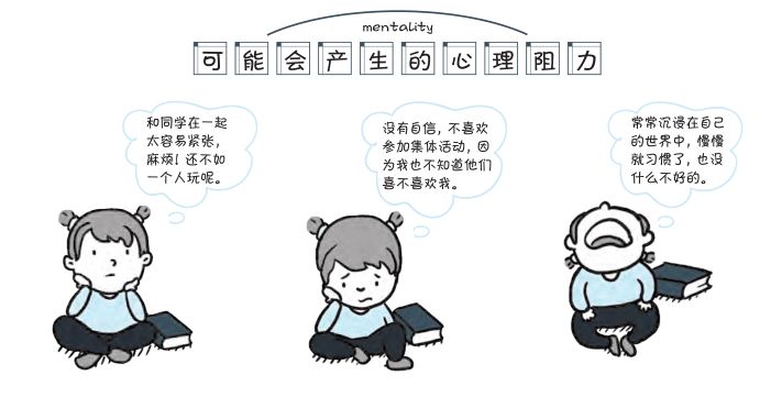 《小学生心理学漫画:社交力》中,首先分析了这种情况的孩子可能会有的心理阻力: